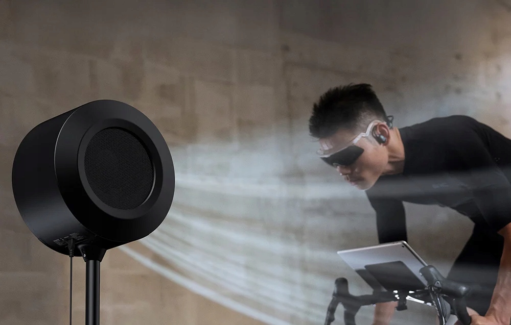 Wbudowany silnik BLDC charakteryzuje się wysoką efektywnością, długą żywotnością i niskim poziomem hałasu. Konstrukcja z szerokimi łopatkami odśrodkowymi, podwójnymi wlotami i obudową typu „snail shell” zapewnia silny, stabilny i równomierny przepływ powietrza oraz prędkość do 50 km/h. Takie rozwiązanie pozwala na szybkie schłodzenie organizmu i utrzymanie optymalnej temperatury podczas całej sesji treningowej.