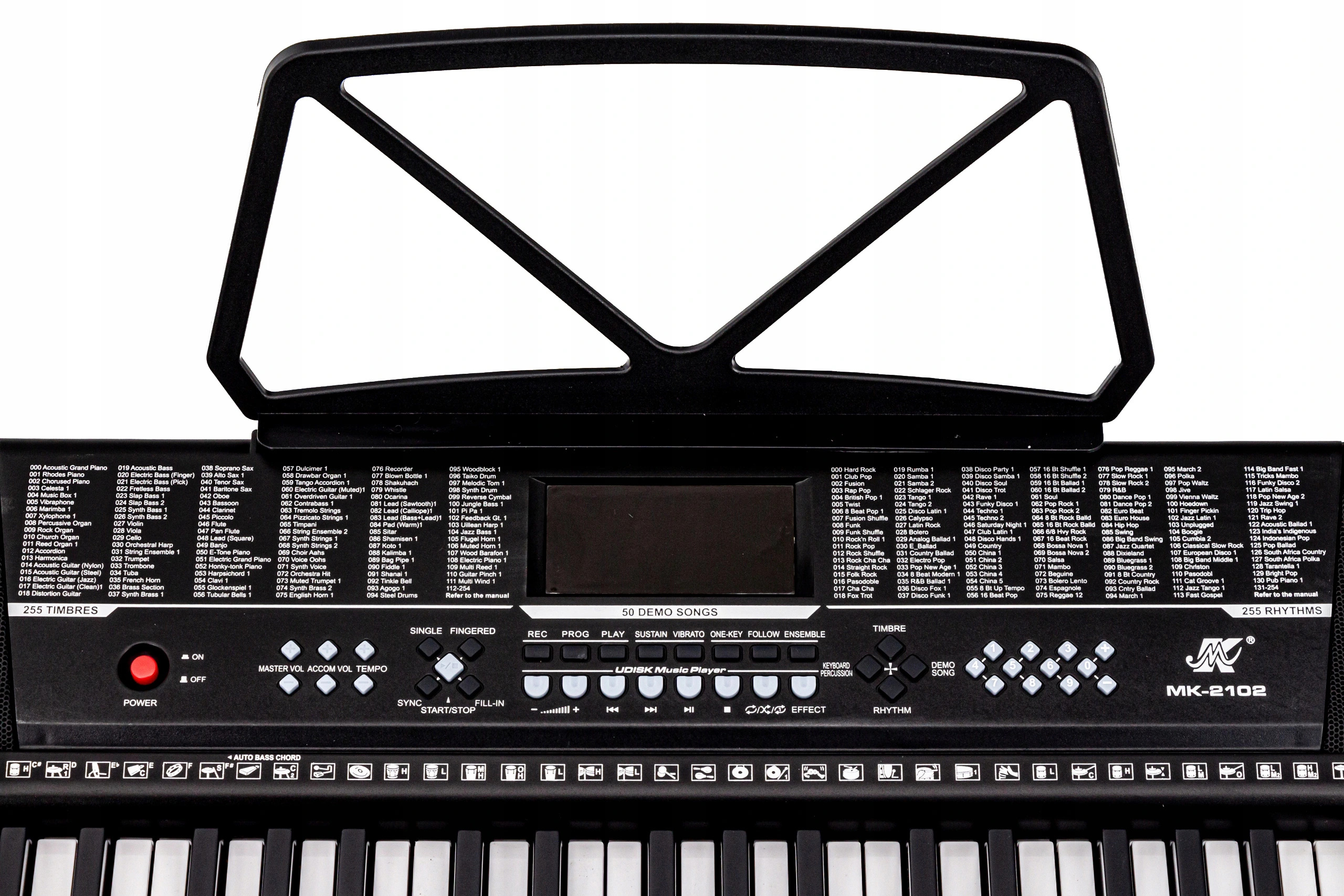 Każdy utwór, jaki skomponujesz na organach MK-2102 będzie brzmiał profesjonalnie - wiele efektów sprawi, że każda linia melodyczna, prosta czy skomplikowana, zaskoczy słuchacza ciekawą kompozycją i fantastycznym brzmieniem.