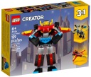 Ten zestaw LEGO Creator 3 w 1 pozwala dzieciom zbudować trzy modele dające różne możliwości zabawy. Pociechy mogą złożyć ruchomego Super Robota ze skrzydłami na plecach, a potem przebudować go w ruchomego mechanicznego smoka lub wspaniały odrzutowiec z regulowanymi skrzydłami.