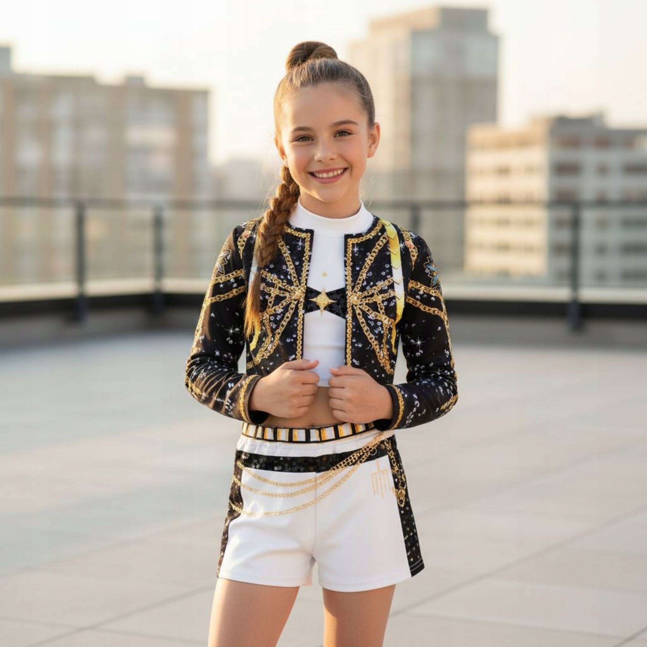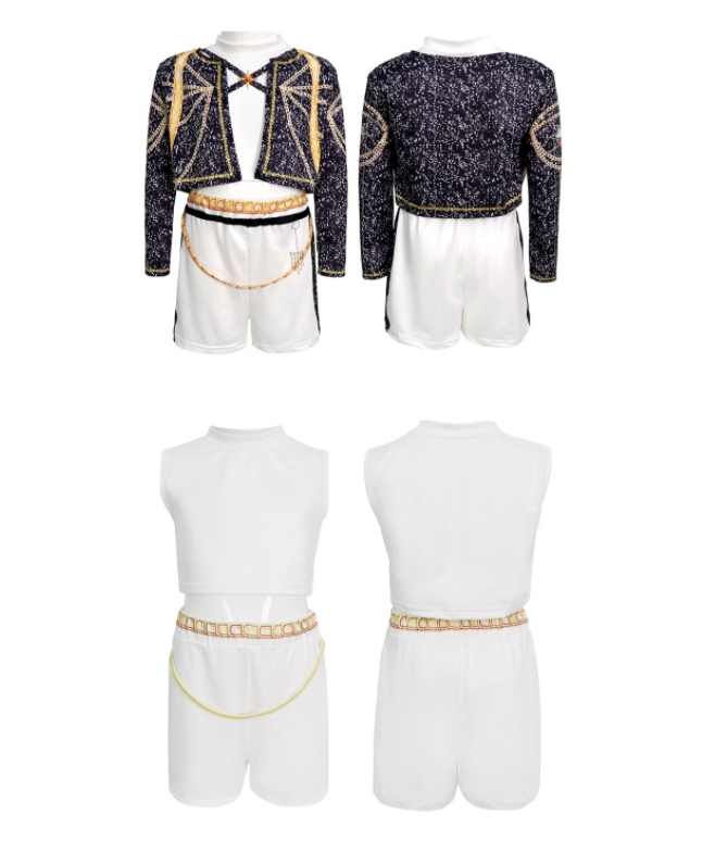 Strój dopracowany w każdym szczególe – od kontrastowych przeszyć po dopasowany krój i dodatki, które tworzą spójną, scenicznie wyglądającą całość.