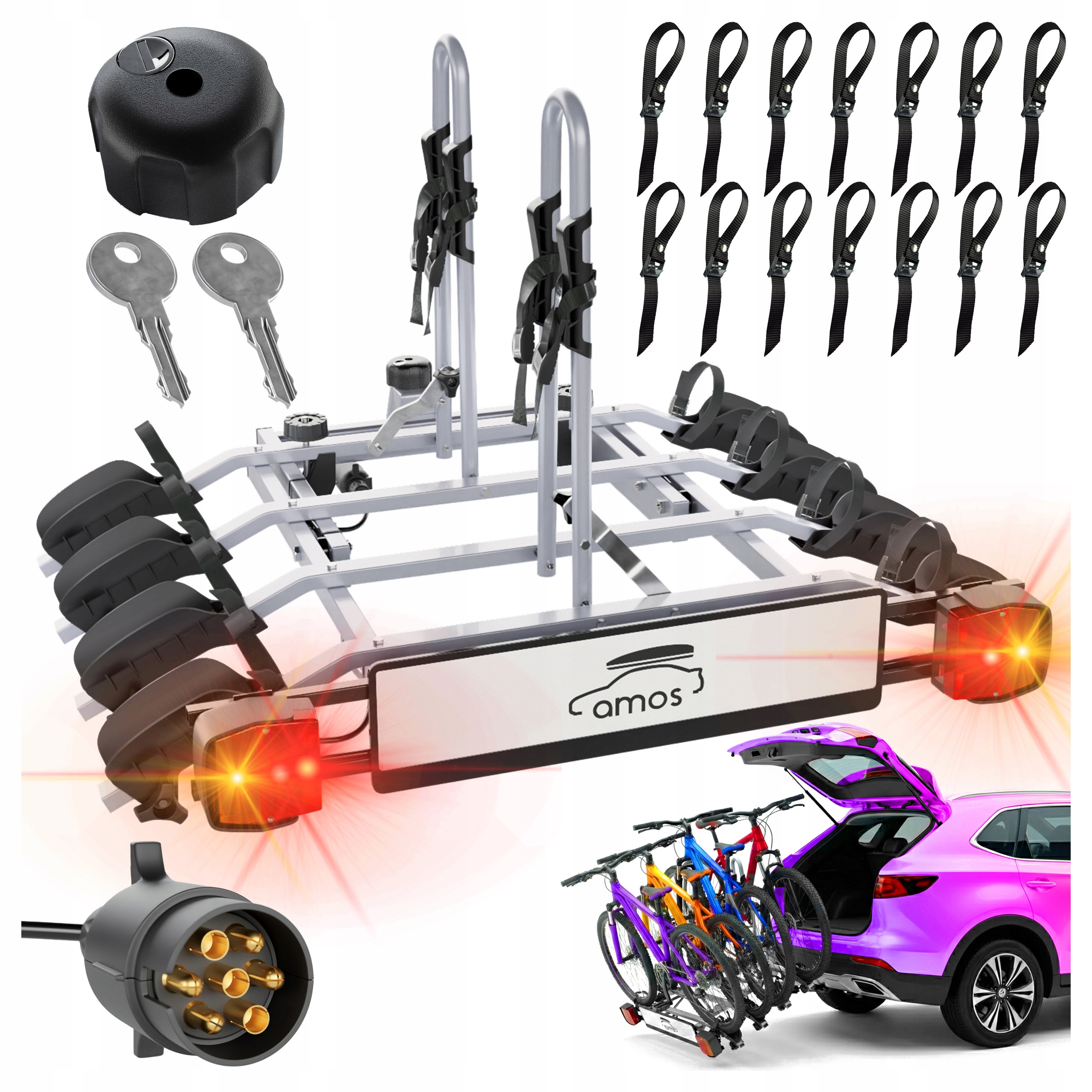Amos to prawie 70 lat doświadczenia i ponad 9000 ocen 5 gwiazdek ⭐️⭐️⭐️⭐️⭐️ na Allegro. Wybierając ten bagażnik, nie kupujesz "kota w worku". Kupujesz sprawdzoną, solidną konstrukcję, która jest produkowana i serwisowana w Polsce. Masz problem? Części zamienne są dostępne od ręki, a nie płyną miesiącami z Chin.