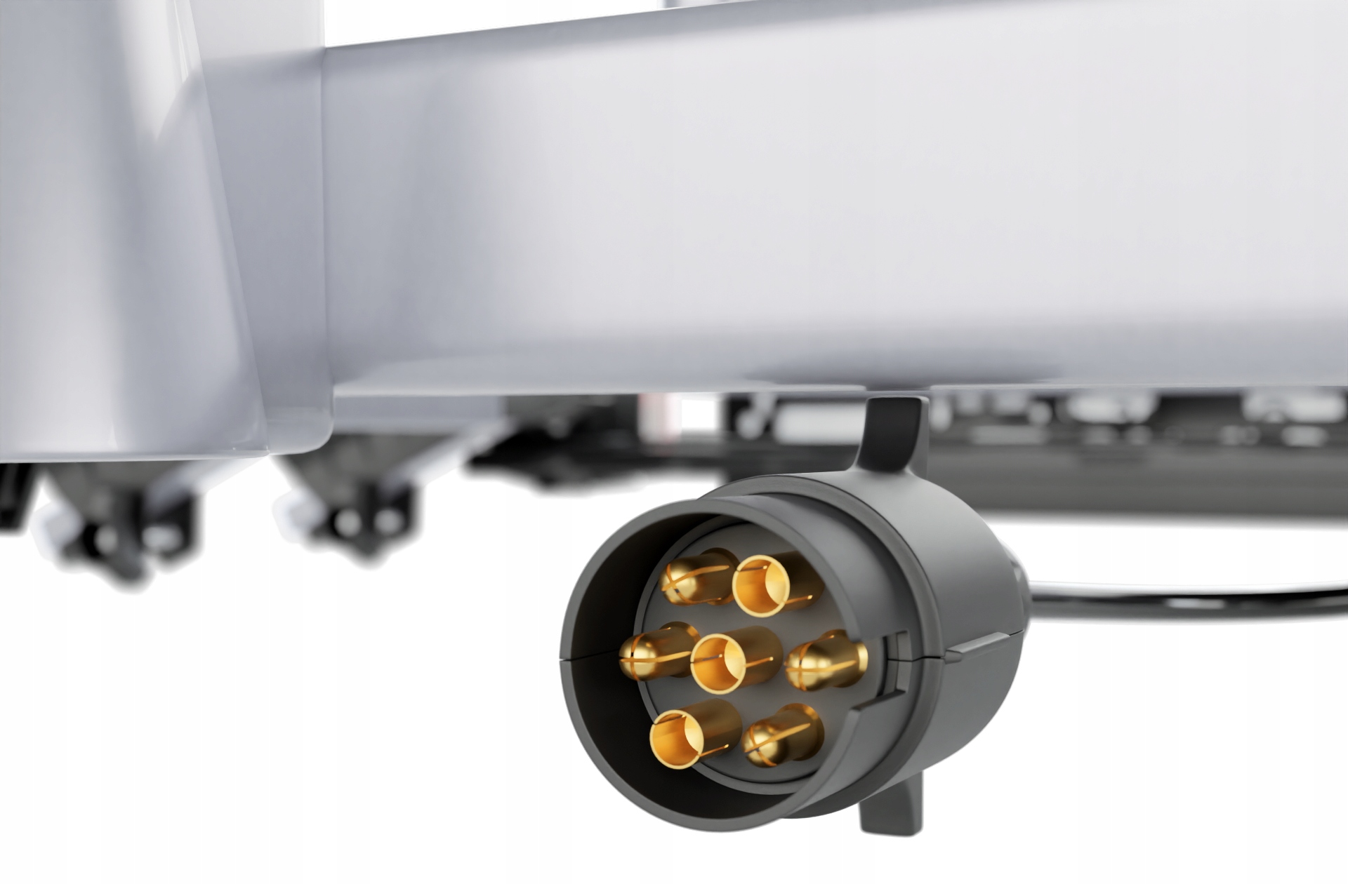 ℹ️ Informacja techniczna: Warto pamiętać, że standardowe złącze 7-pinowe konstrukcyjnie nie obsługuje światła cofania oraz światła przeciwmgłowego. Jeśli zależy Ci na posiadaniu pełnego kompletu oświetlenia (włącznie ze wstecznym i przeciwmgłowym), zapraszamy na nasze inne aukcje, gdzie znajdziesz ten model w wersji 13-pin.
