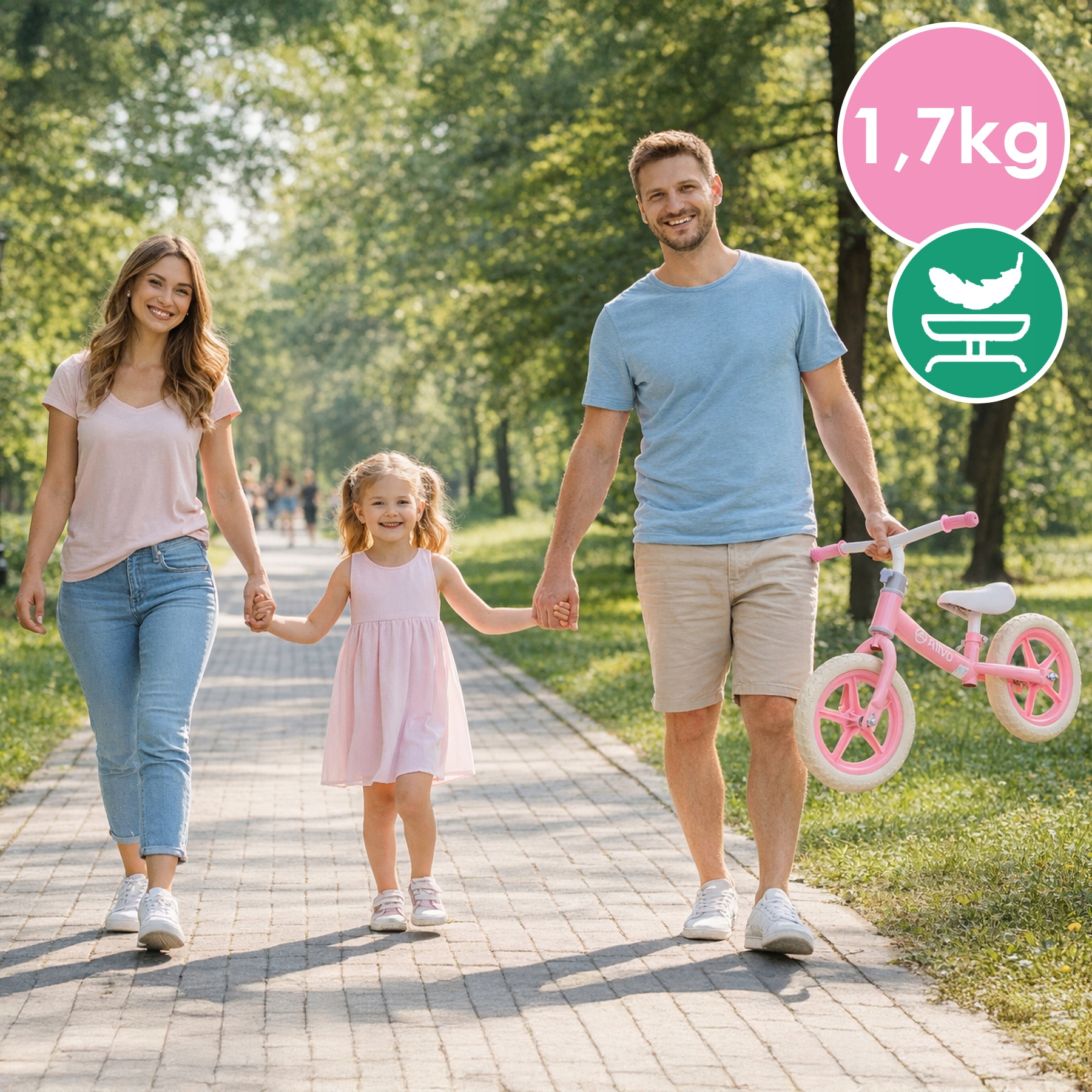 ✅ Dzięki zastosowaniu lekkich materiałów, rowerek jest łatwy do przenoszenia i manewrowania, co oznacza, że gdy maluch się znudzi lub zakończy swoją przygodę na dwóch kółkach, rodzic nie będzie musiał martwić się ciężarem roweru.