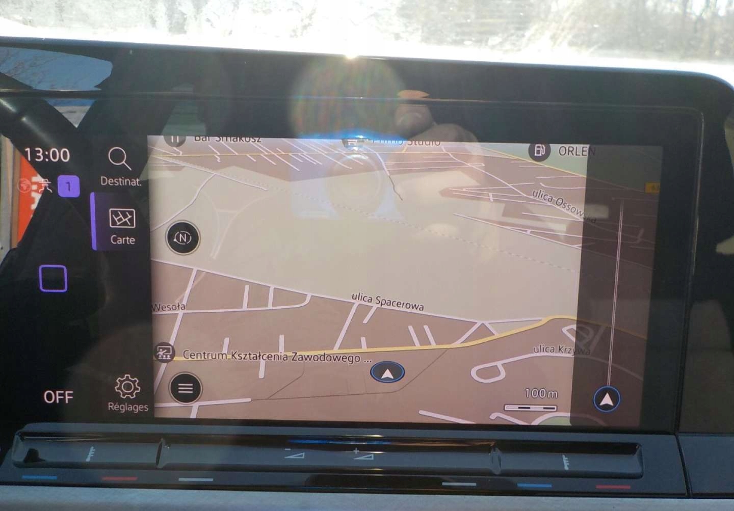 STAŁ W PALĄCYM SIĘ SALONIE VOLKSWAGENA.