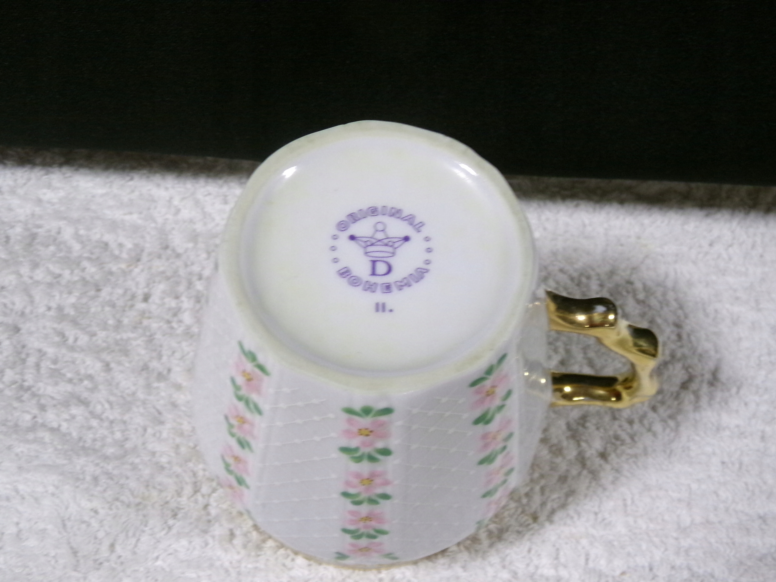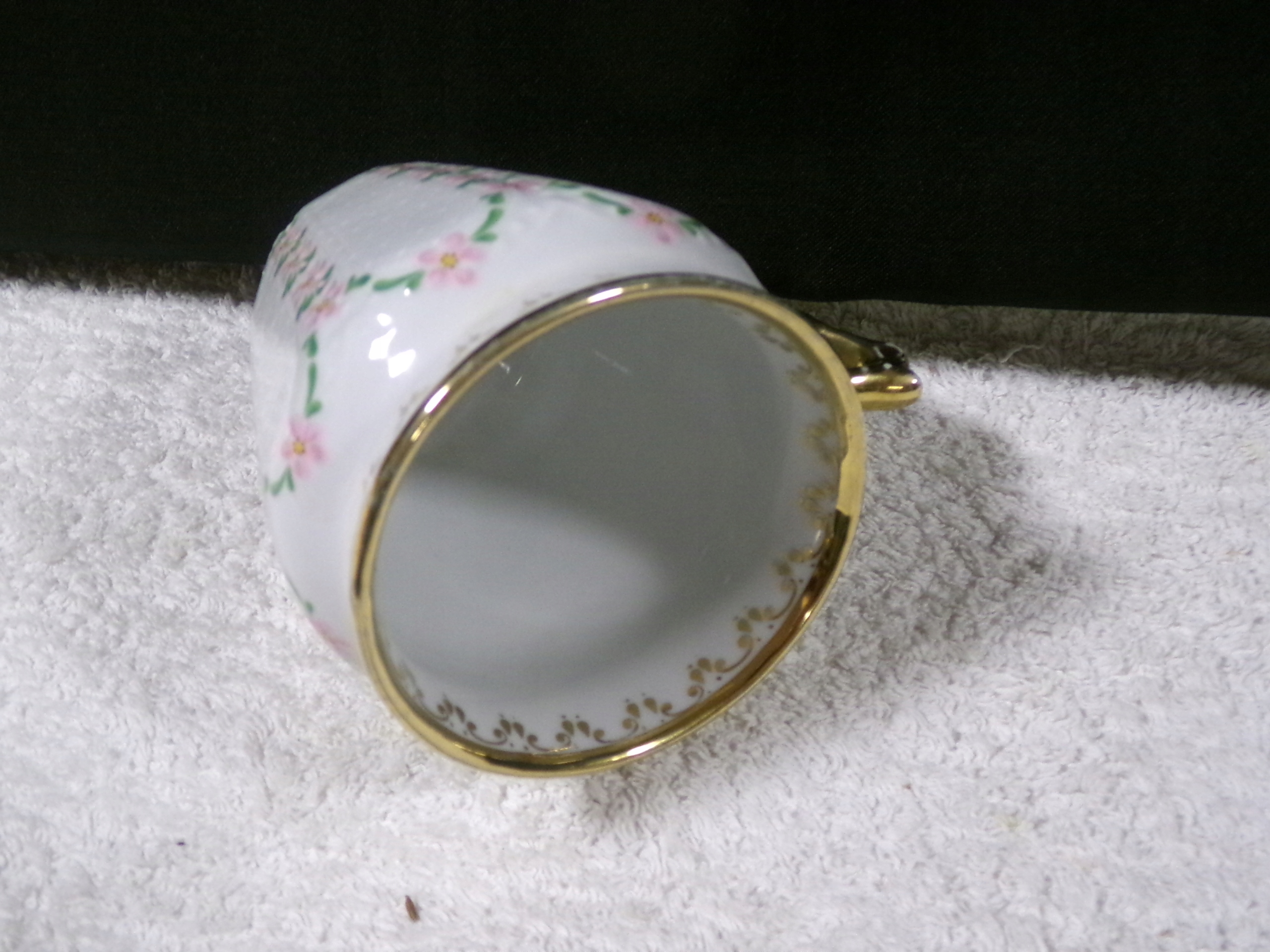 Piękny kubek porcelanowy o wysokości 10 cm,średnicy środka 8,5 cmpojemności 200 ml ,wadze 0,25 kg.Stan zachowany bardzo dobry,bez uszkodzeń.