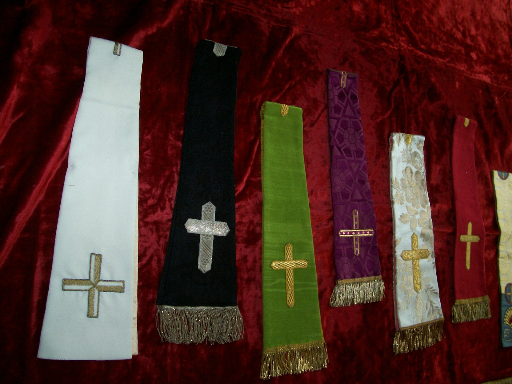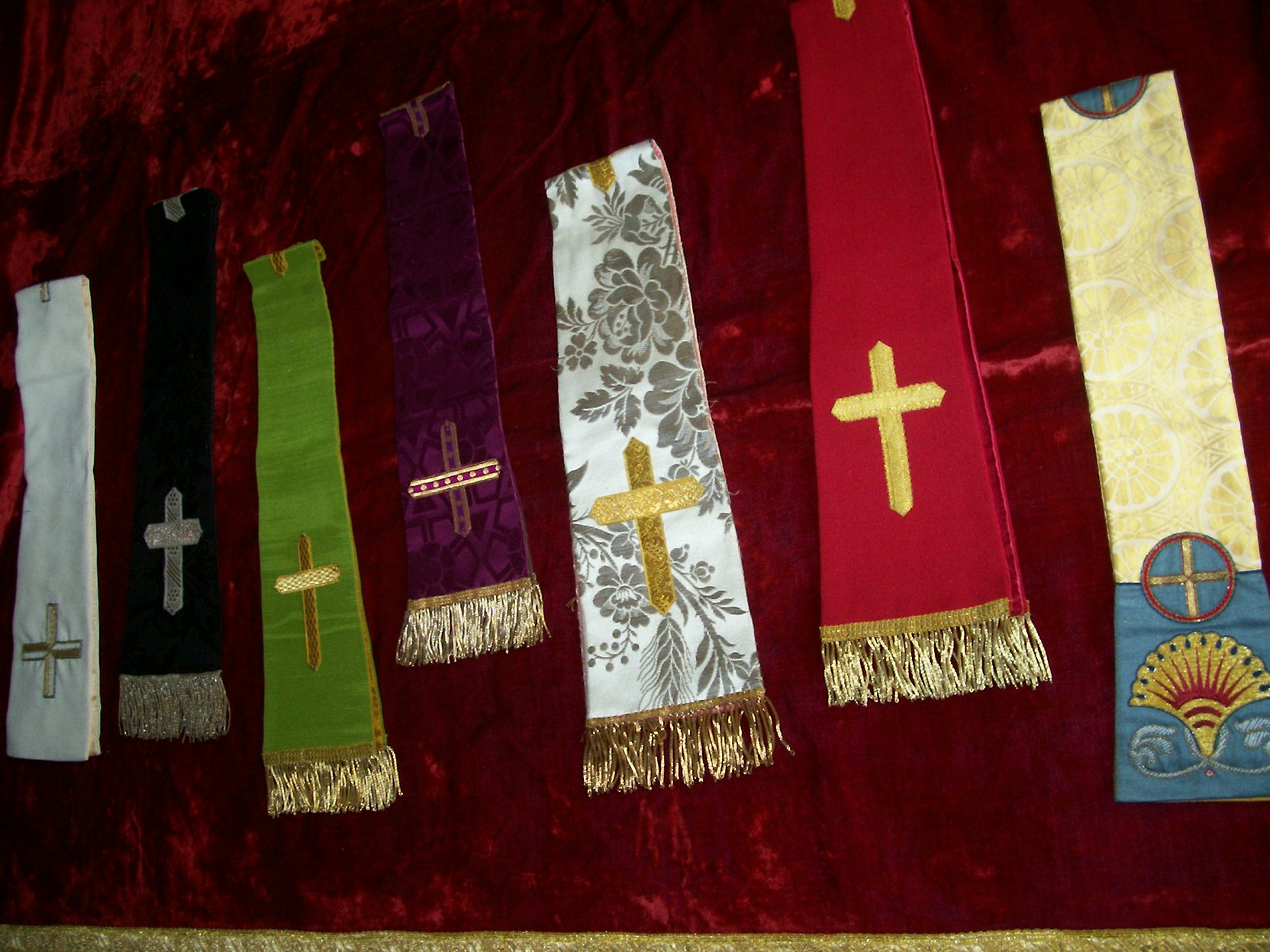 7 x MANIPULARZ. Używane. Materiał: brokat. Stan zachowania: dobry+++. Zdjęcia są integralną częścią opisu.