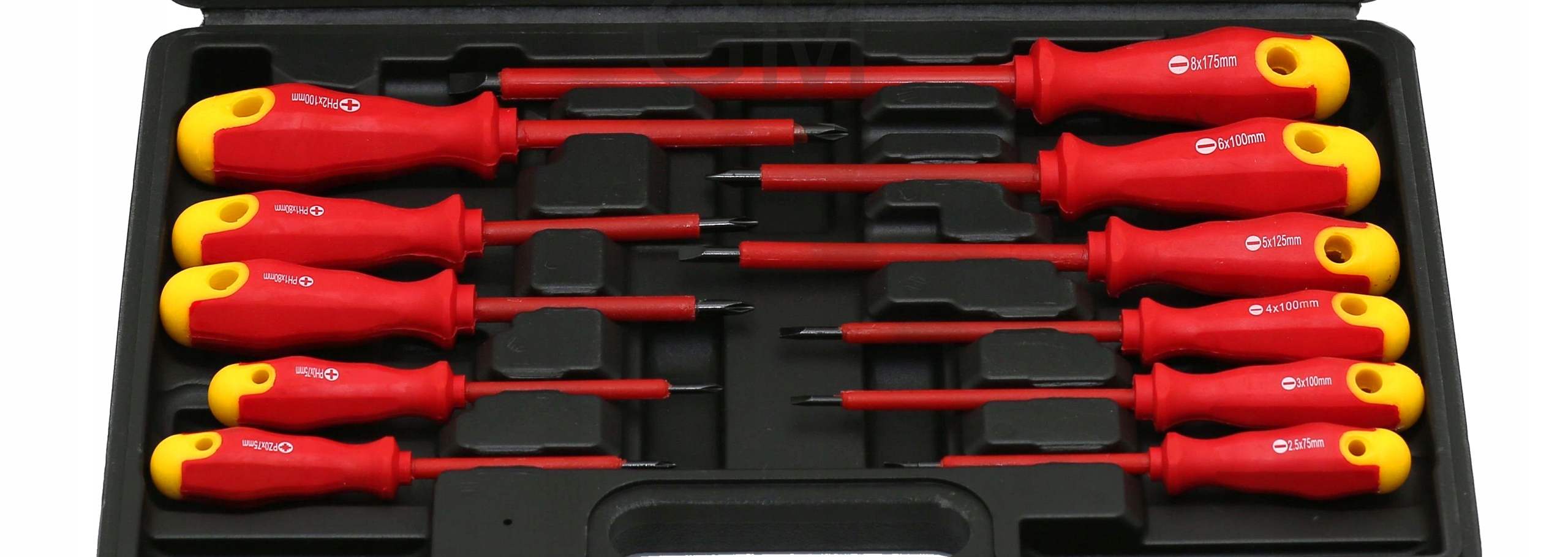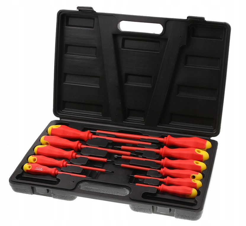 Zestaw zawiera 11 wkrętaków izolowanych + praktyczną walizkę, dzięki czemu masz zawsze pod ręką odpowiednie narzędzie.