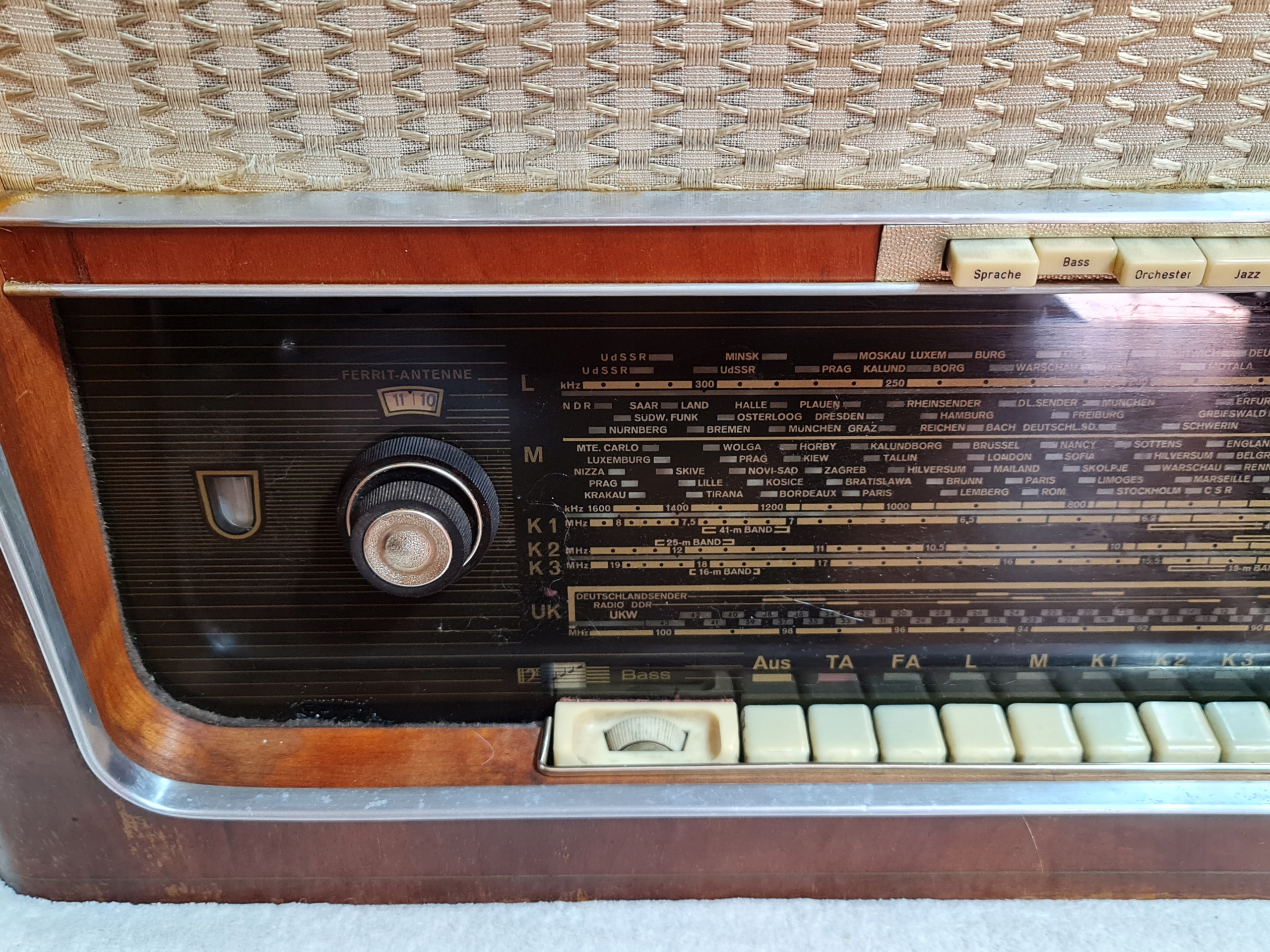 РАДИО ВКЛЮЧАЕТСЯ, ВСЕ ЛАМПЫ НАКАЛЯЮТСЯ, КРОМЕ АЗ-12.КЛАВИША FA НЕ ВСТАВЛЯЕТСЯ.ОСТАЛЬНЫЕ КЛАВИШИ ПЕРЕКЛЮЧАЮТСЯ.ФЕРРИТОВАЯ АНТЕННА ВРАЩАЕТСЯ Себя.ВСЕ РУЧКИ РАБОТАЮТ.В ВЕРХНЕЙ ЧАСТИ 2 СКОЛЫ ШПОНА.ОБЩЕЕ СОСТОЯНИЕ ОЦЕНИВАЮ ПО ХОРОШИЙ.СЗАДИ ШТАМП ЭКСПОРТНАЯ ВЕРСИЯ..