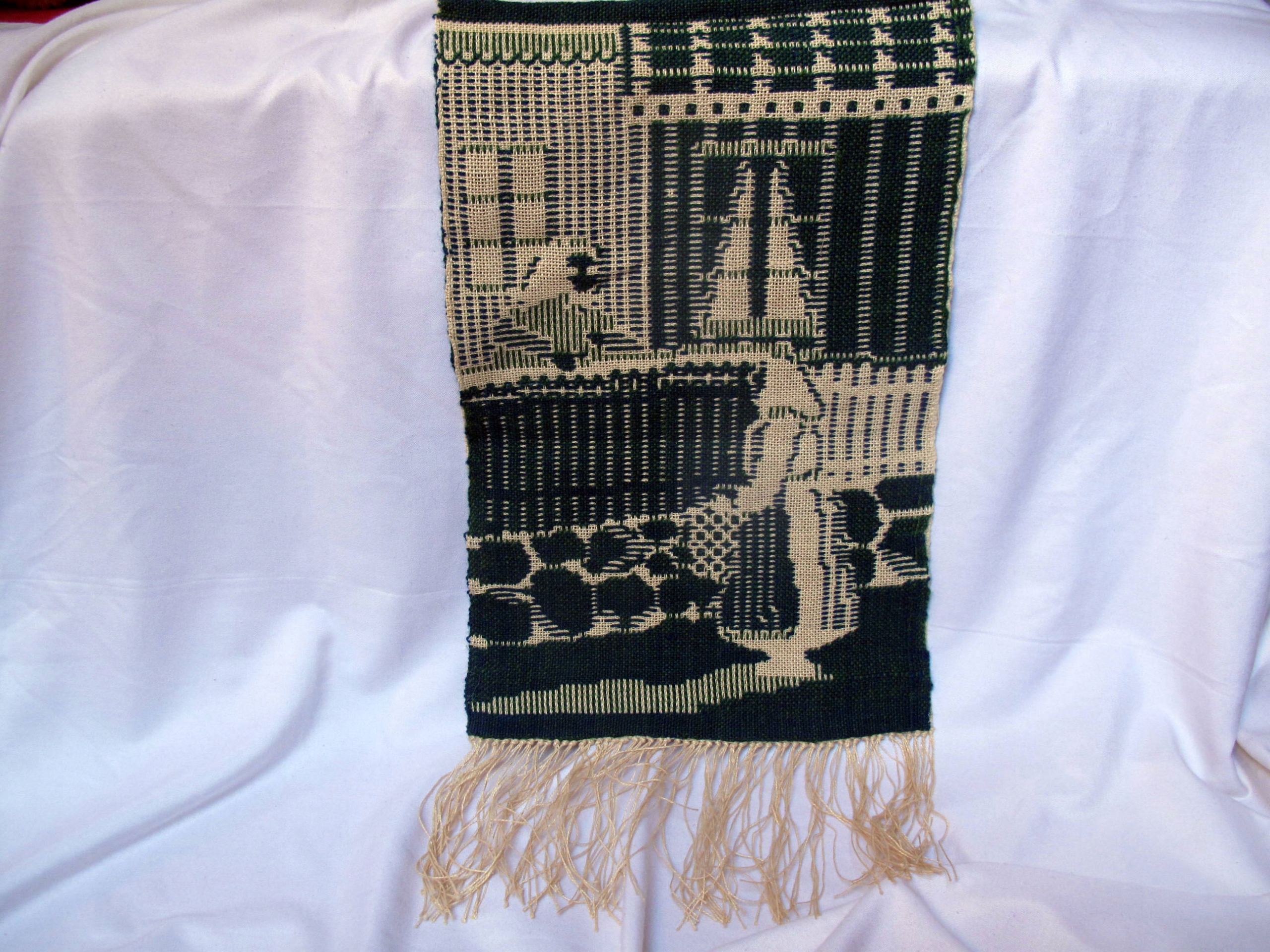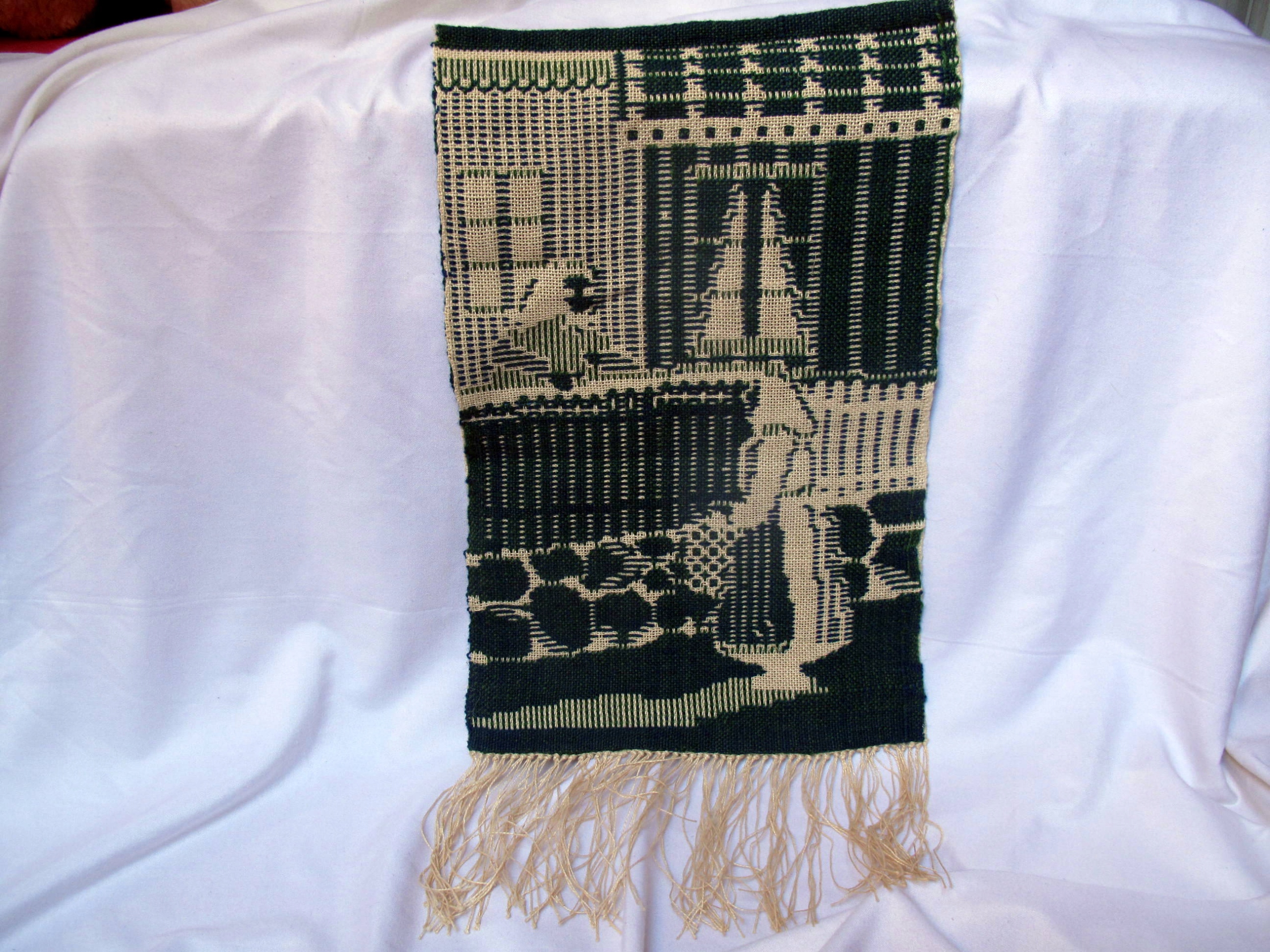Tkaniny na moich aukcjach na ogół nie posiadają metek ani sygnatur / jeżeli mają zawsze je przedstawiam/, kieruję się wyłącznie własnym oglądem, mogę się mylić w ocenie materiału / prawdziwy czy sztuczny/ . Makatka ma 33 x 53 cm, tkana podwójnie, len , kolory jak na zdjęciach.