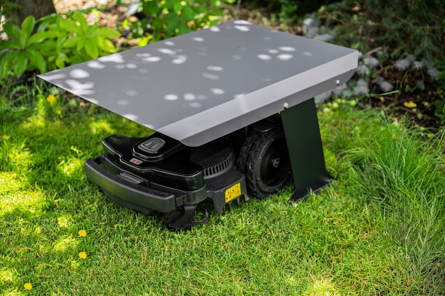 Zadaszenie do robota kosiarki chroni urządzenie podczas pracy oraz ładowania w stacji dokującej. Dzięki solidnej konstrukcji sprawdza się w różnych warunkach ogrodowych.