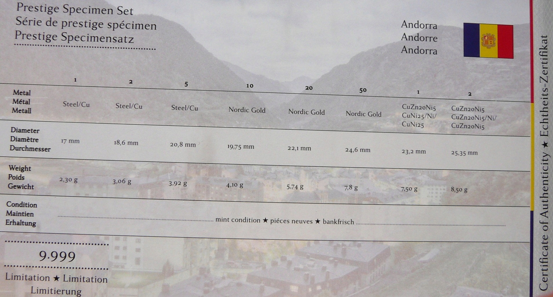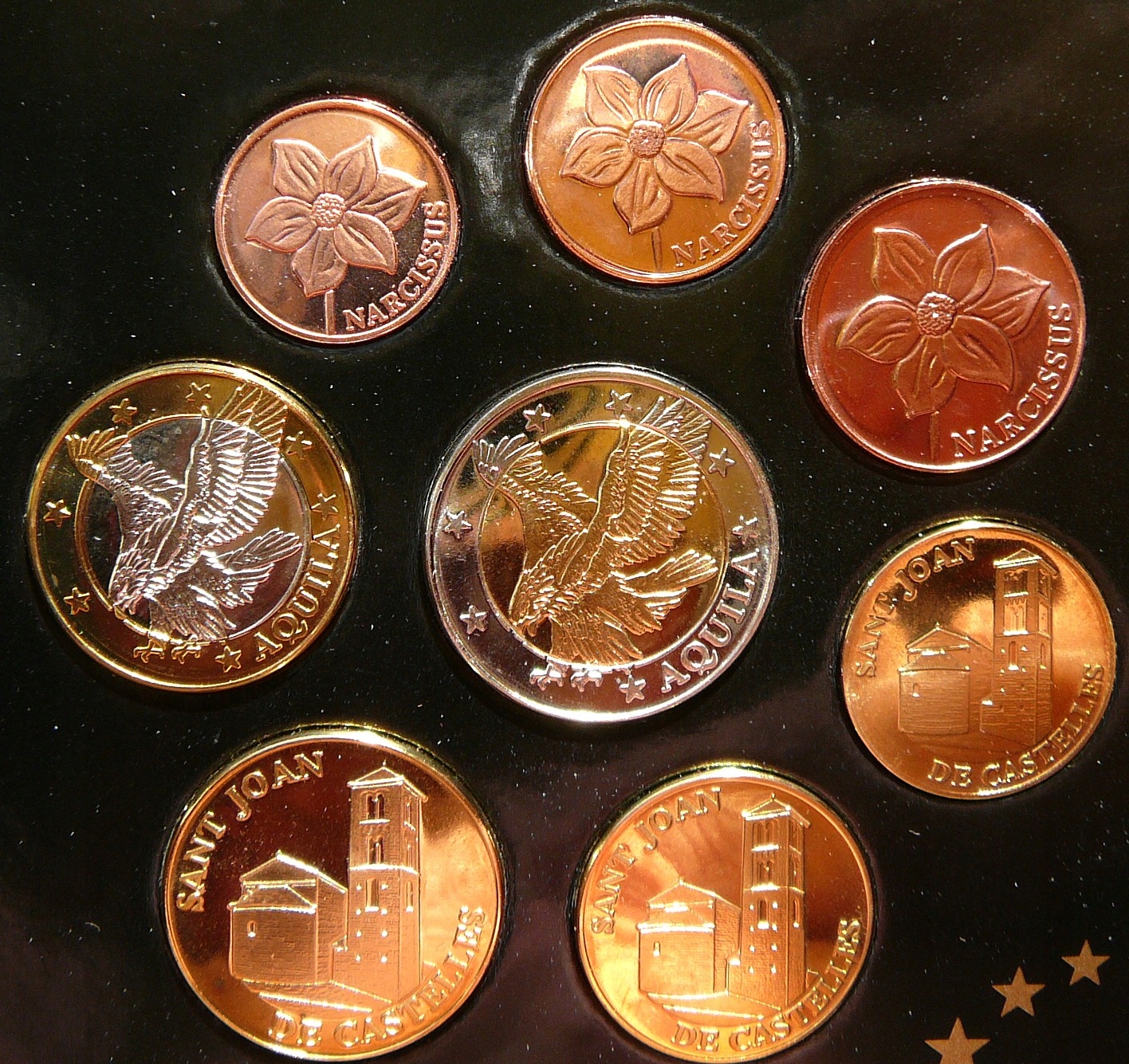 NA AUKCJI WYSTAWIONY JEST PRZEPIĘKNY ORYGINALNY ZESTAW PRÓBNYCH MONET KOLEKCJONERSKICH - SET 8 SZTUK - EURO - ANDORRA - ORZEŁ BIELIK KOŚCIÓŁ w CANILLO KWIAT NARCYZ - PROOF - MENNICZE + CERTYFIKAT AUTENTYCZNOŚCI - NA INNYCH AUKCJACH WYSTAWIAM DUŻO ZESTAWÓW i MONET EURO - ZAPRASZAM DO OBEJRZENIA.