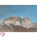 Góry ukazane są w ciepłym, złocistym świetle, które podkreśla ich potężne, skaliste ściany oraz