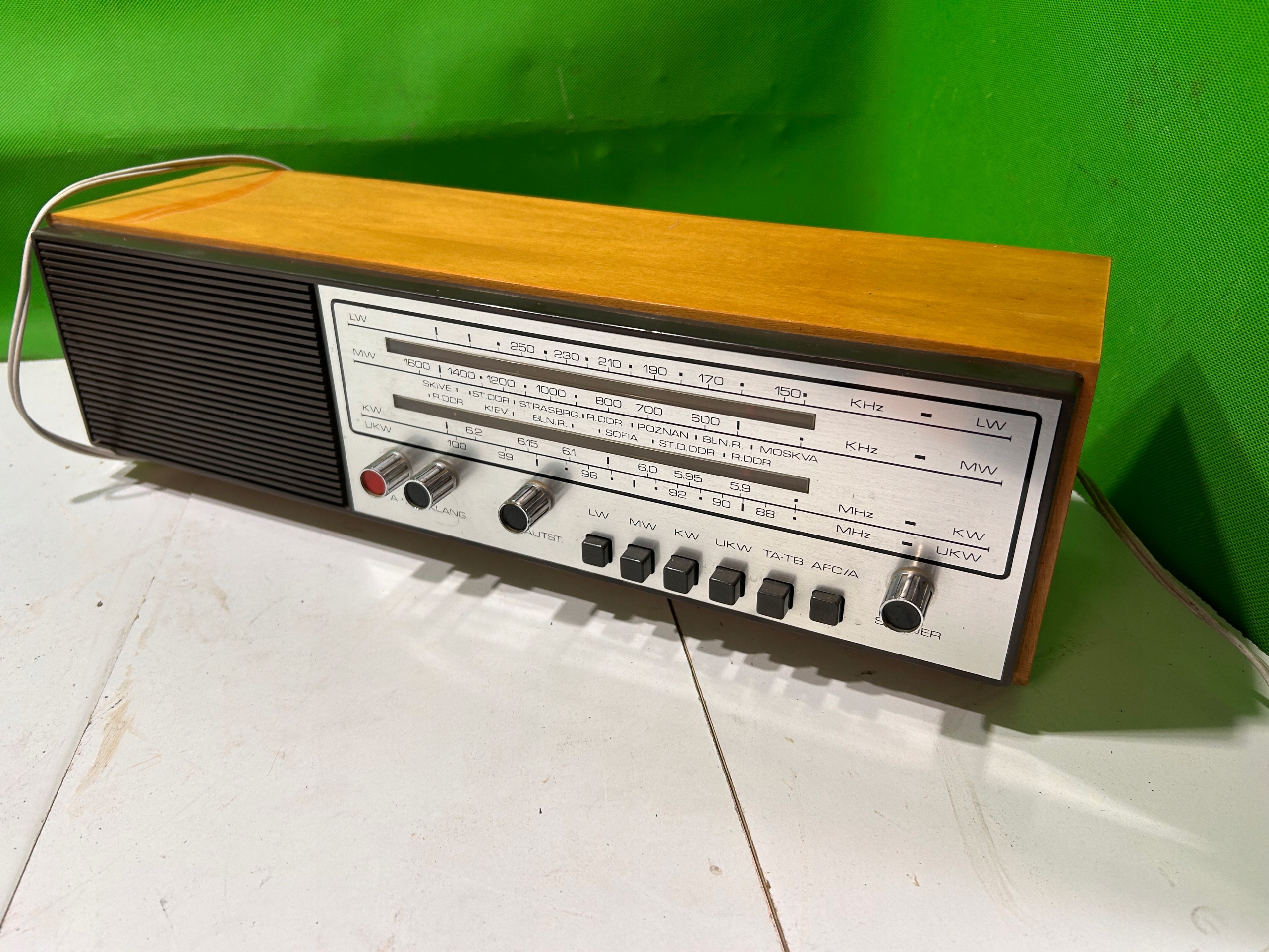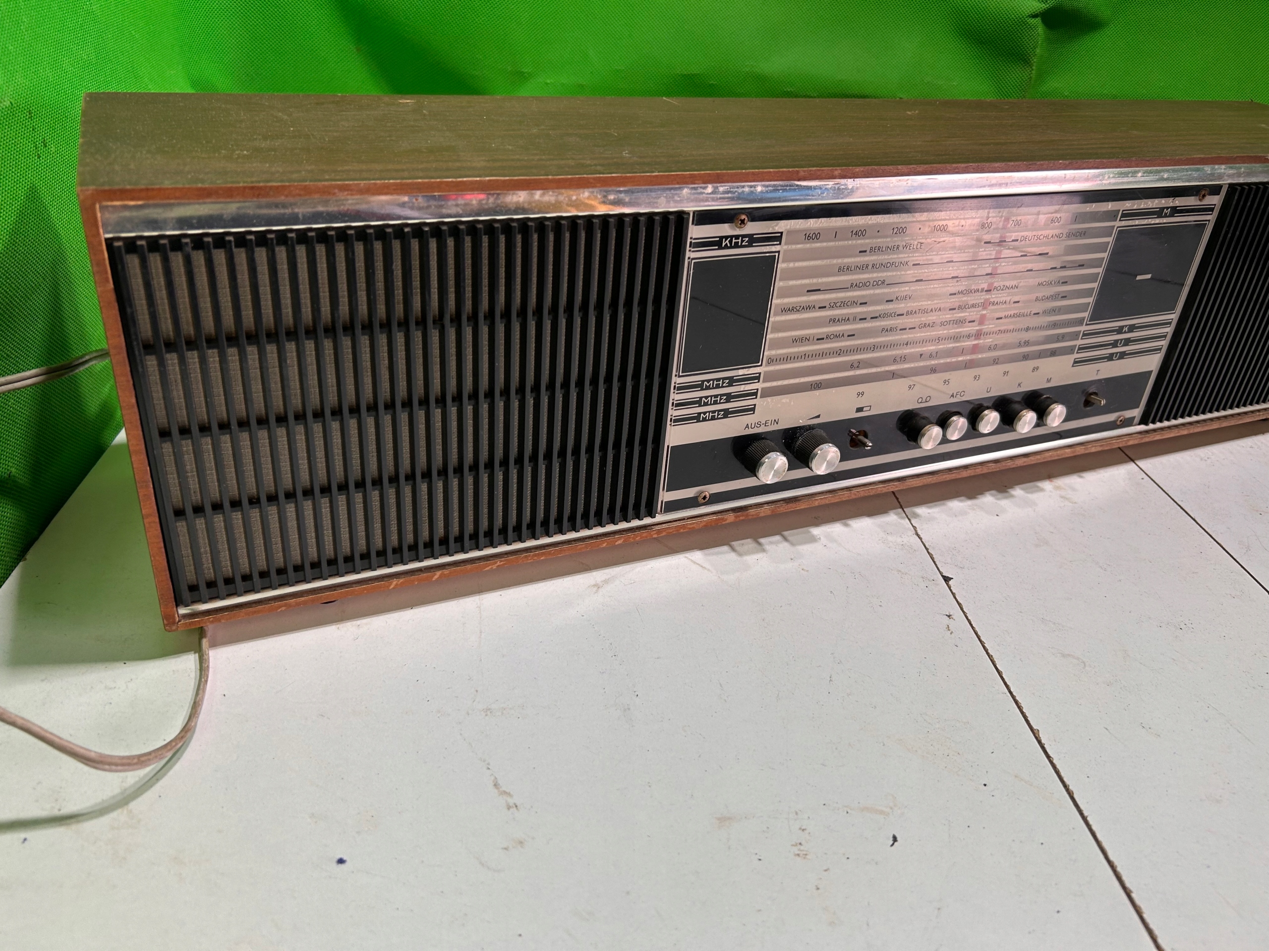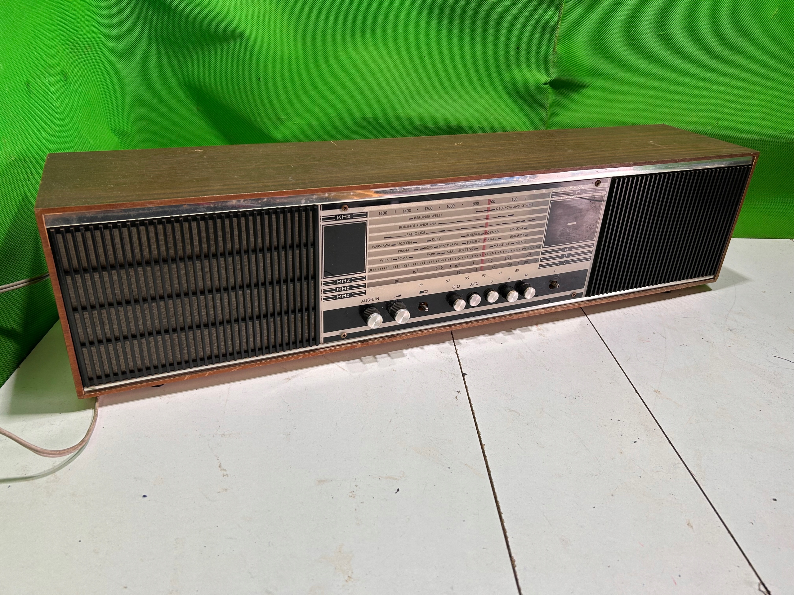Przedmiotem aukcji są 2 stare radia widoczne na zdjęciach.