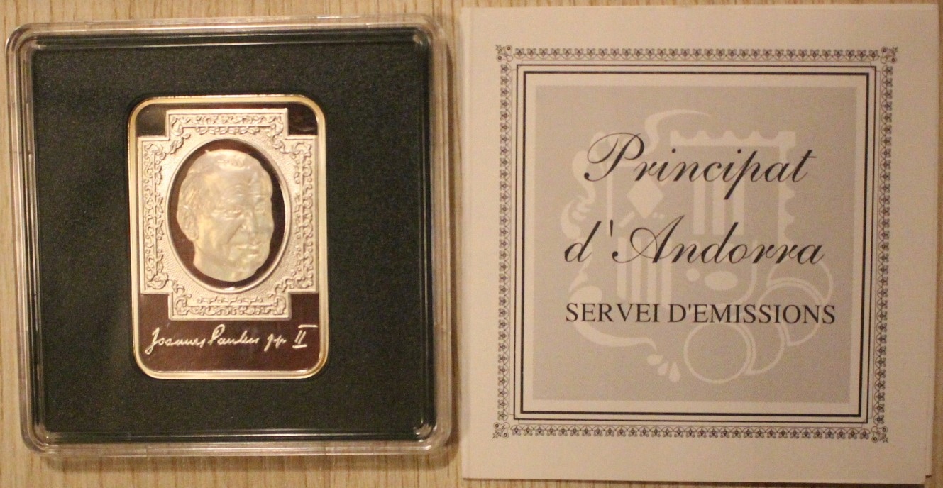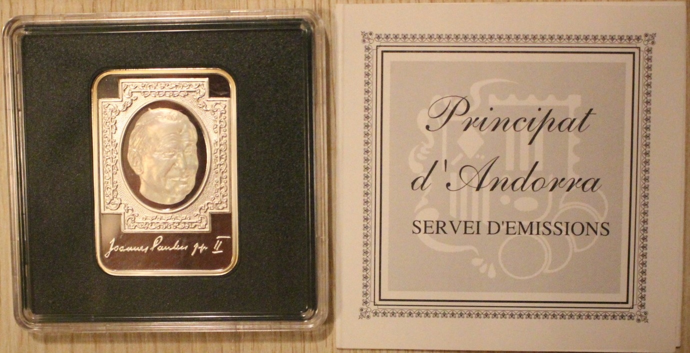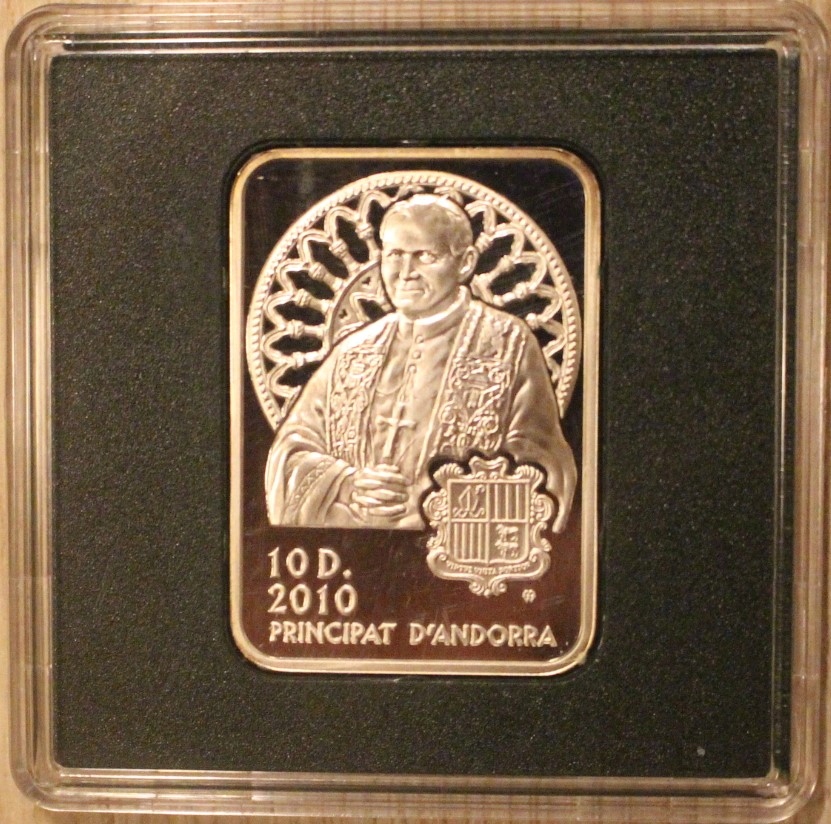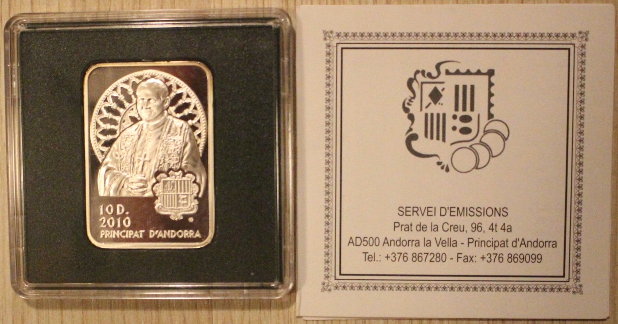 Название PAPIEŻ - JAN PAWEŁ II - 10 DINARS - DINERÓW - DINARÓW 2010 ANDORA, SREBRO PRÓBY 925, CERTYFIKAT, RZADKOŚĆ