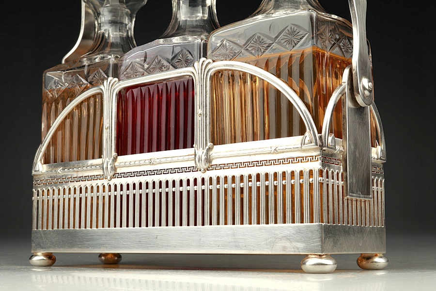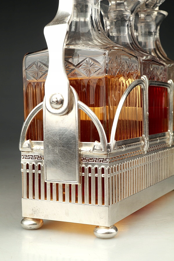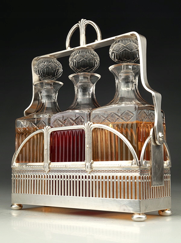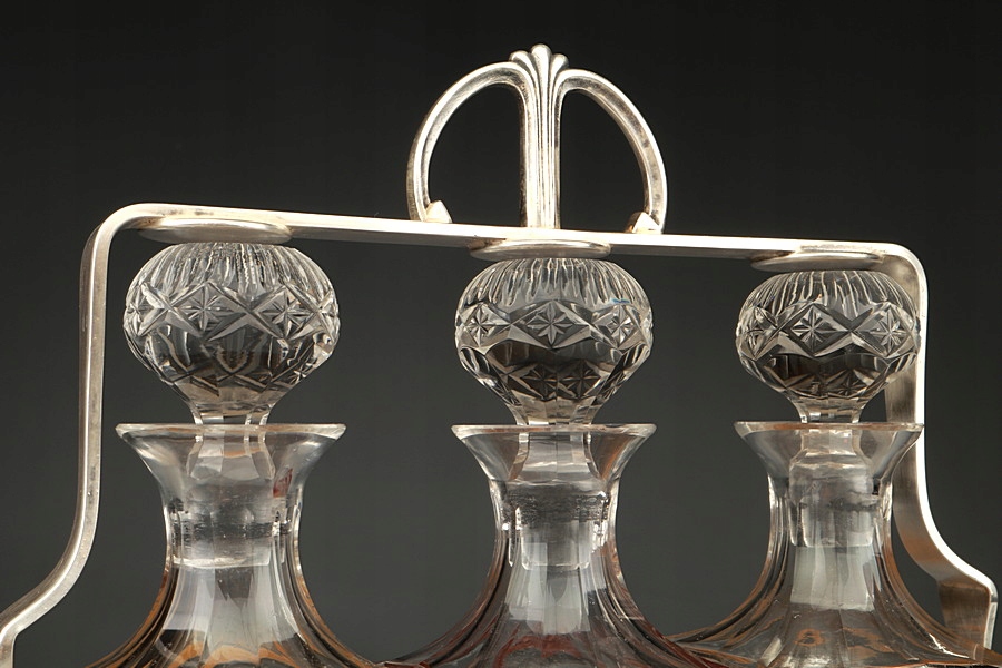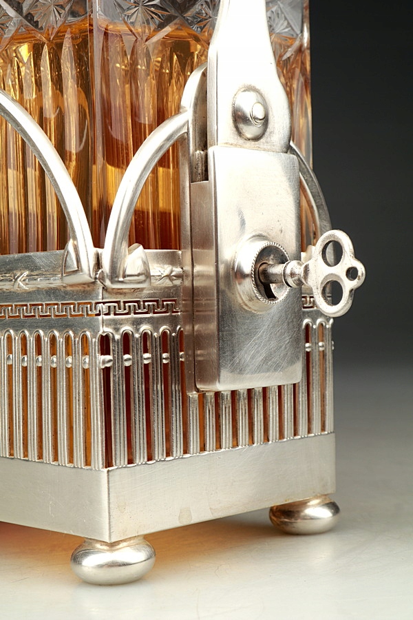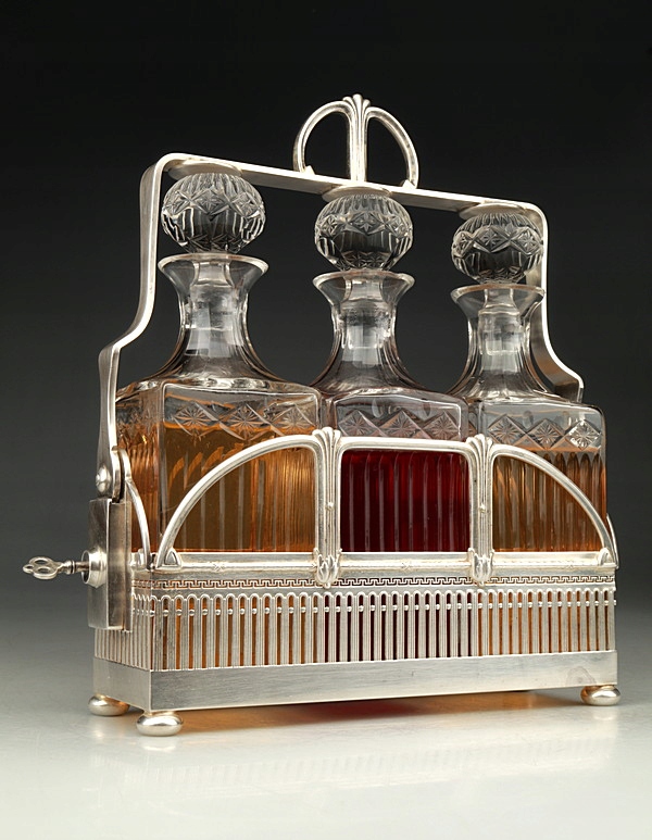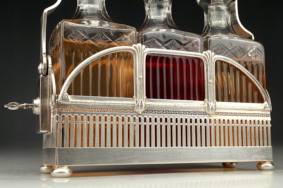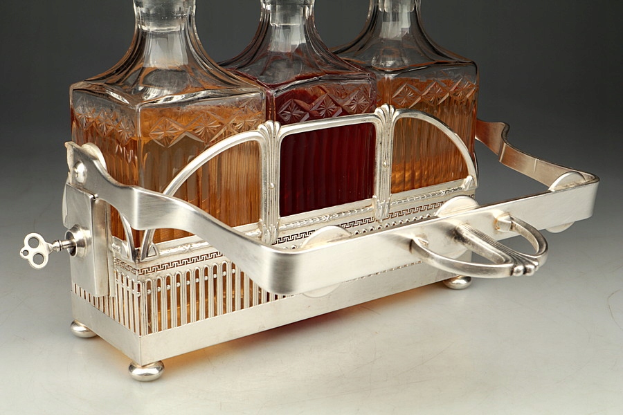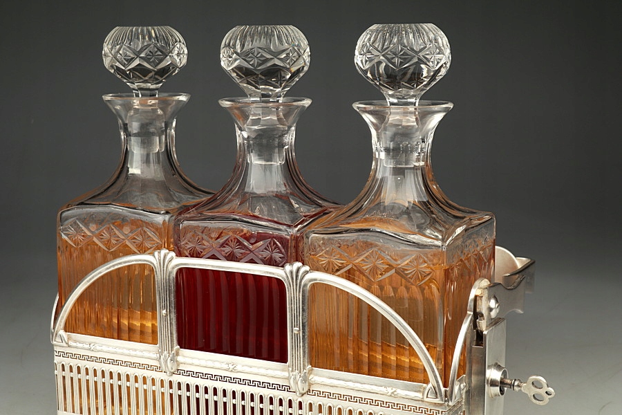 Tantalus - przenośny barek zamykany na kluczyk z trzema karafkami -