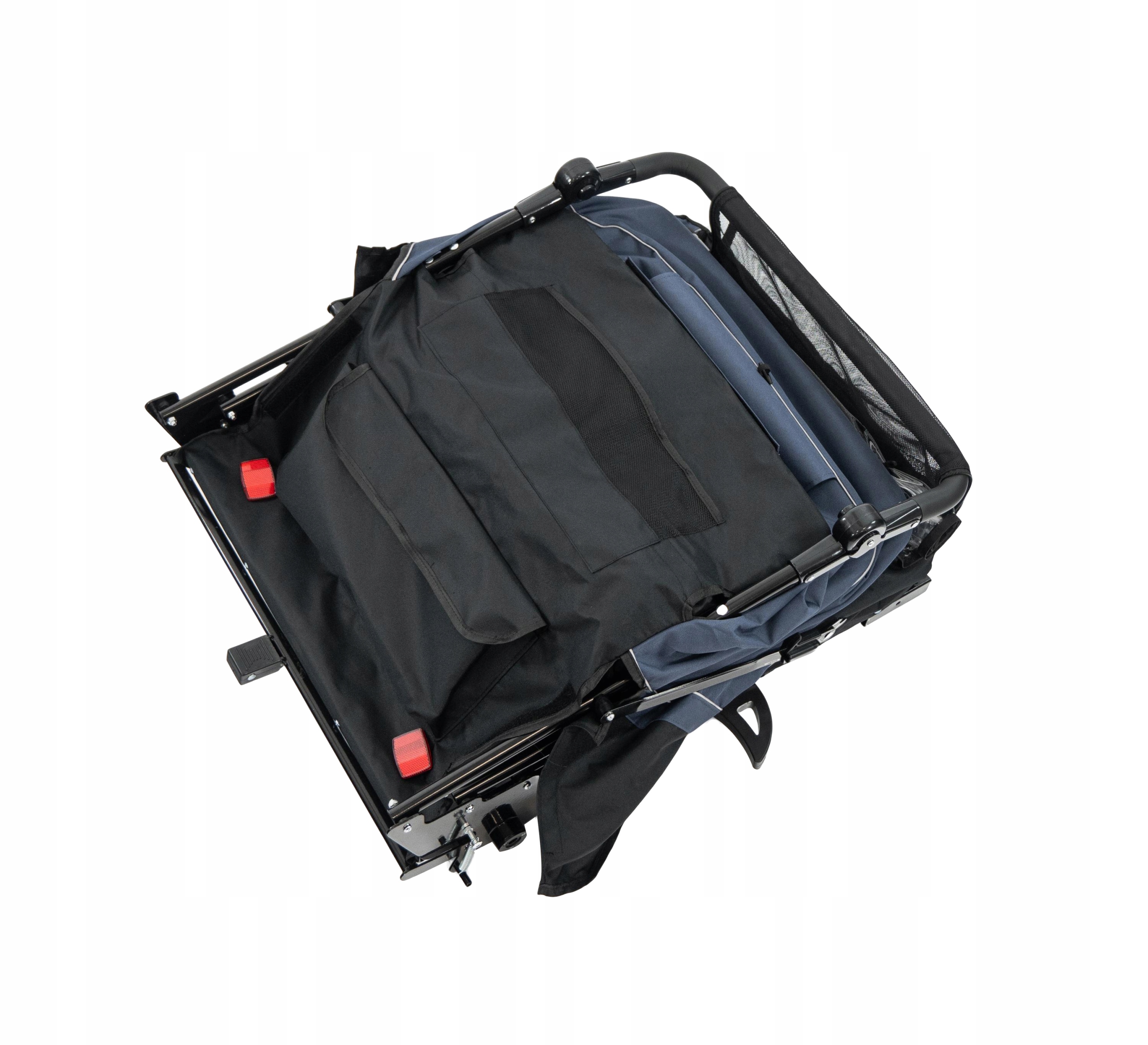 ▶️ Przyczepka została wyposażona w praktyczne rozwiązania zwiększające wygodę użytkowania, takie jak duża przestrzeń ładunkowa z tyłu, w której można przewozić zakupy, plecak lub zabawki. ▶️ Składana konstrukcja pozwala złożyć ją na płasko, co ułatwia transport w samochodzie oraz przechowywanie w domu, garażu lub piwnicy.