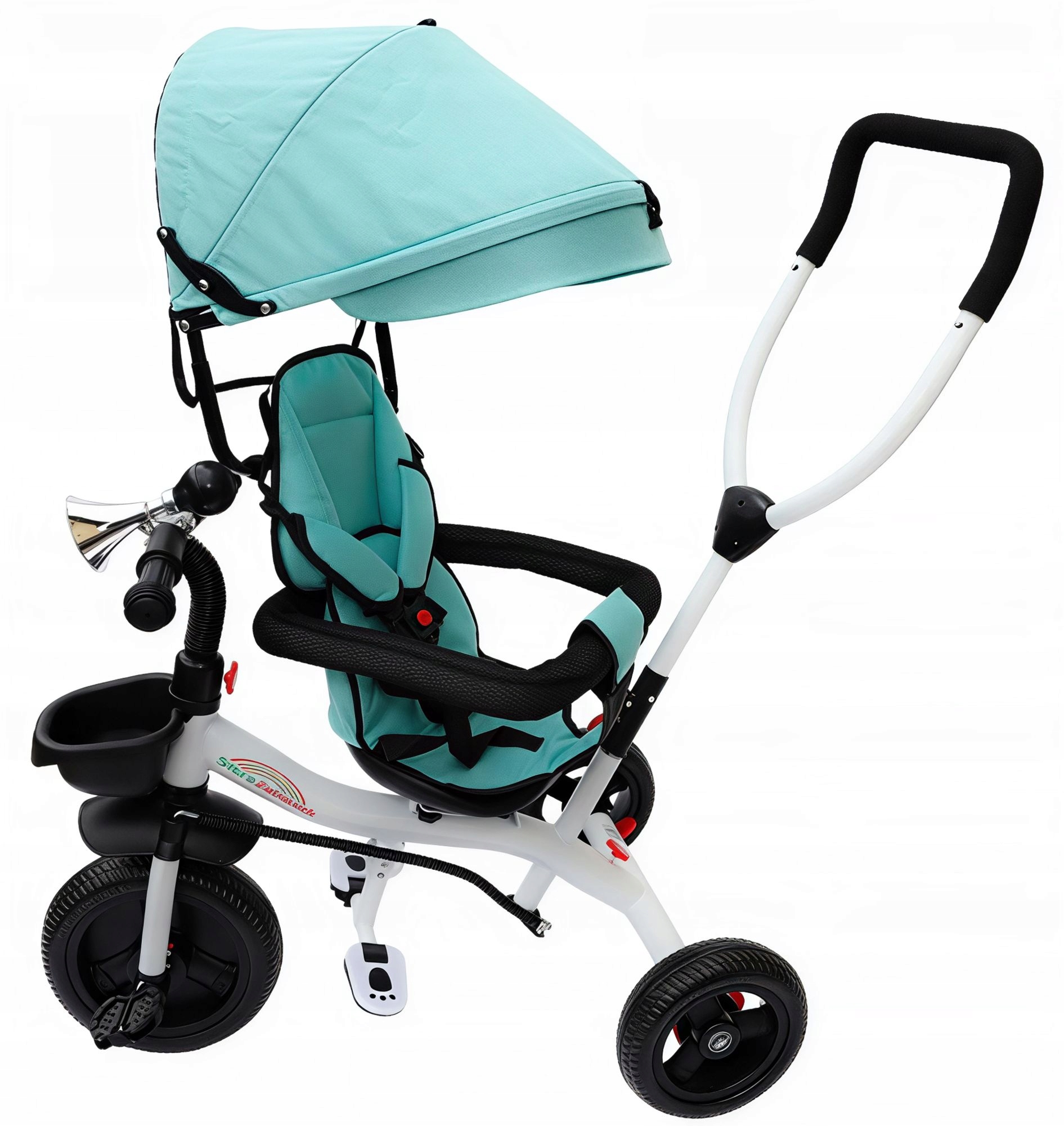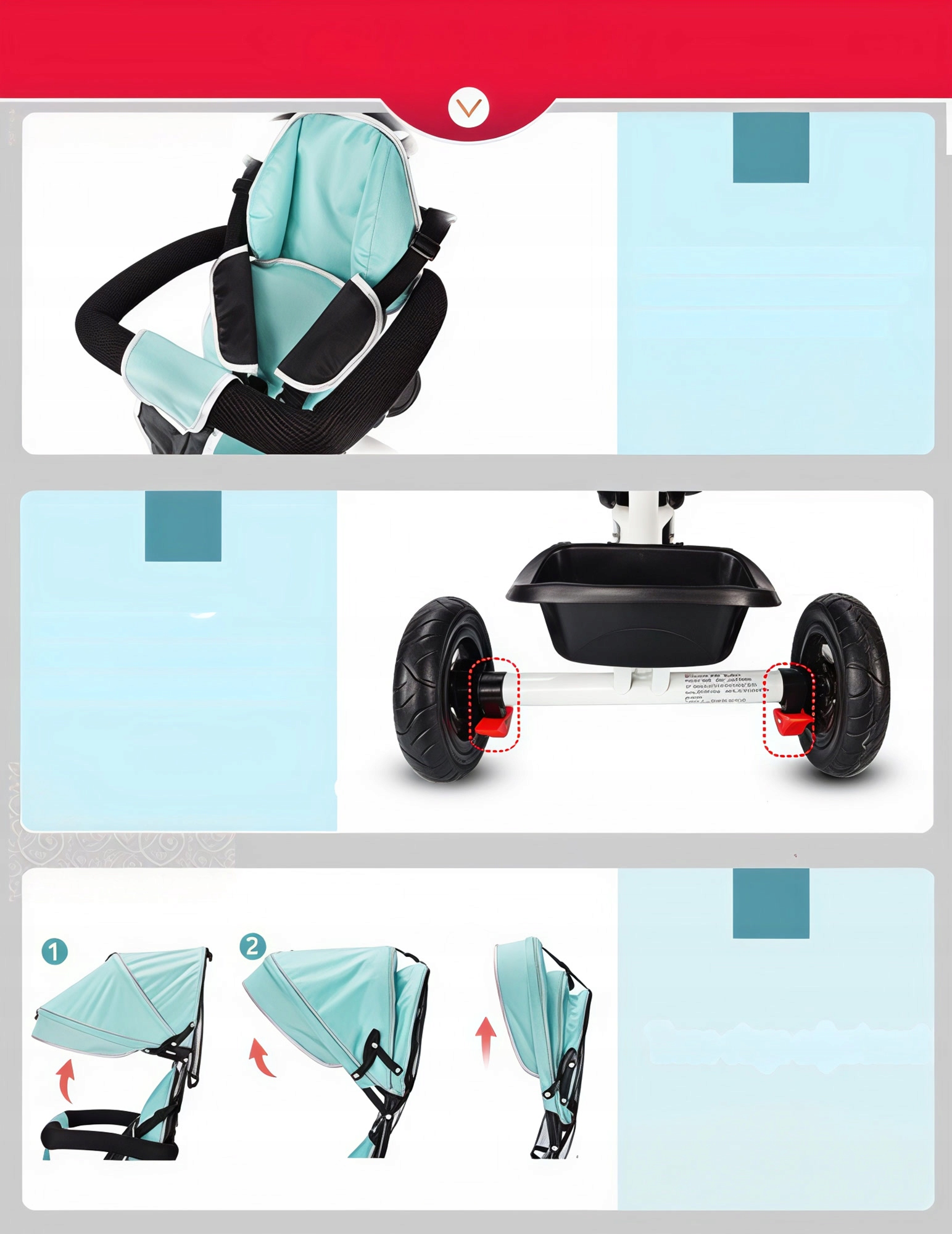 ✅ Modułowa konstrukcja "Grow with Me" W miarę jak dziecko rośnie, możesz demontować poszczególne elementy: daszek, rączkę dla rodzica, barierkę oraz oparcie. Dzięki temu produkt służy przez lata – od spacerówki po samodzielny rowerek trójkołowy.