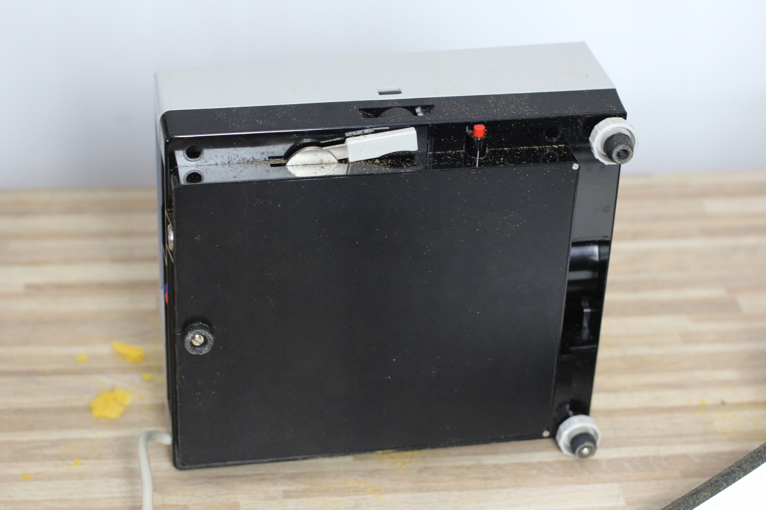 Projektor slajdów ADOX 800M . Projektor włącza się , pilot sprawny , mechanizm działa lecz nie sprawdzany z magazynkiem ( brak) . Na górnej obudowie odparzona oraz przyklejone wypełnienie - sparciała gąbka . W zestawie oryginalne etui , książka , pilot .