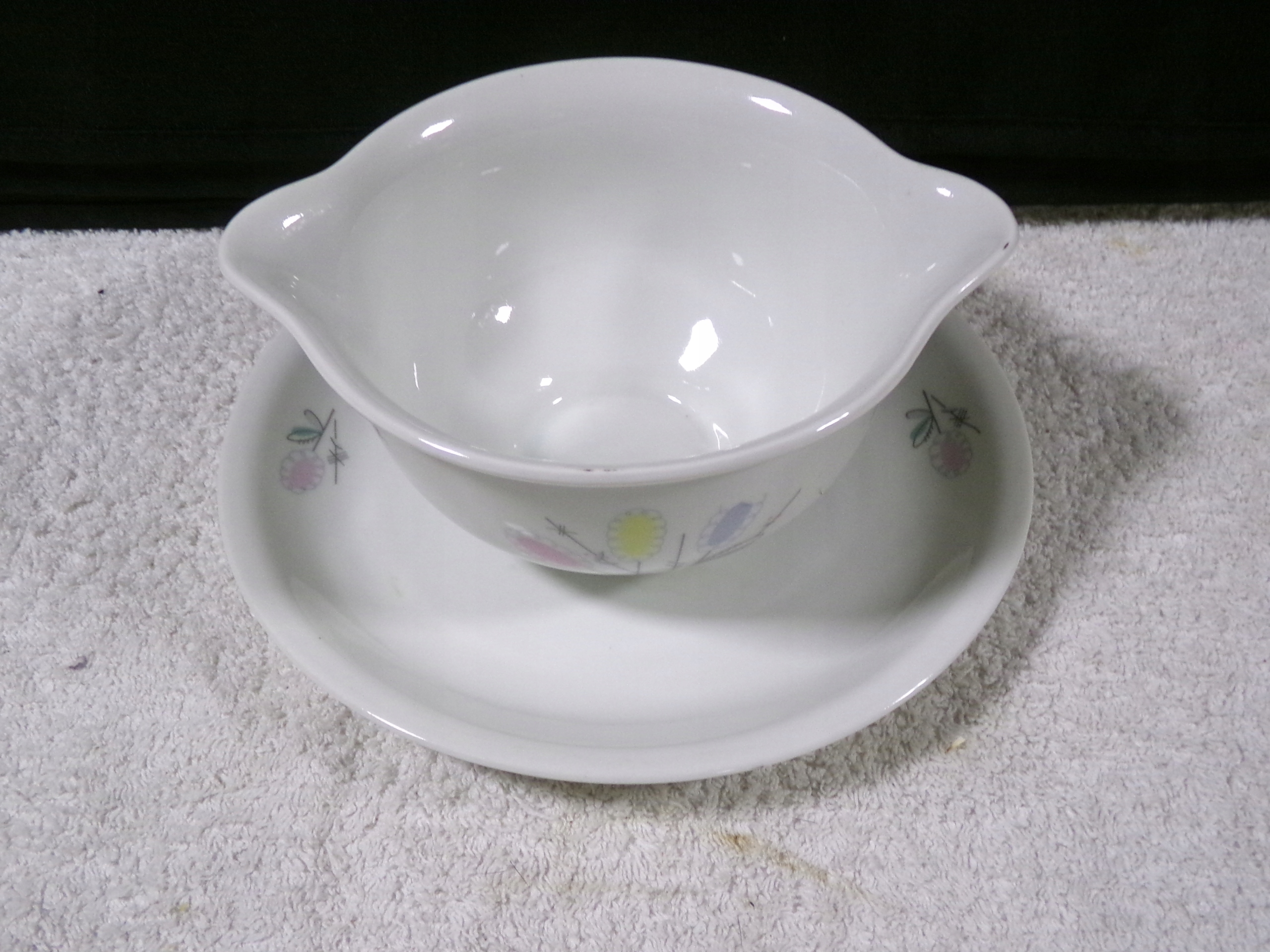 Sosjerka z porcelany o średnicy 19x16,5 cm,wysokości 9 cm,wadze 0,64 kg.Stan zachowany BARDZO dobry,bez uszkodzeń.