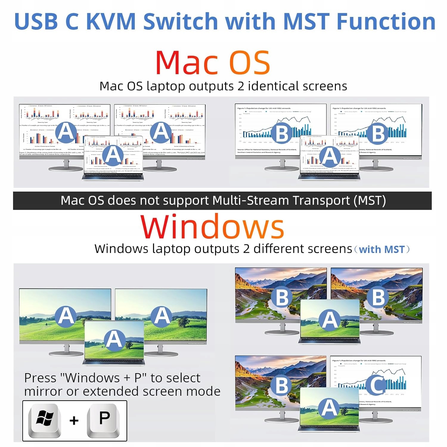 Windows: Obsługuje tryb rozszerzony – możesz wyświetlić dwa zupełnie inne obrazy na dwóch monitorach zewnętrznych.