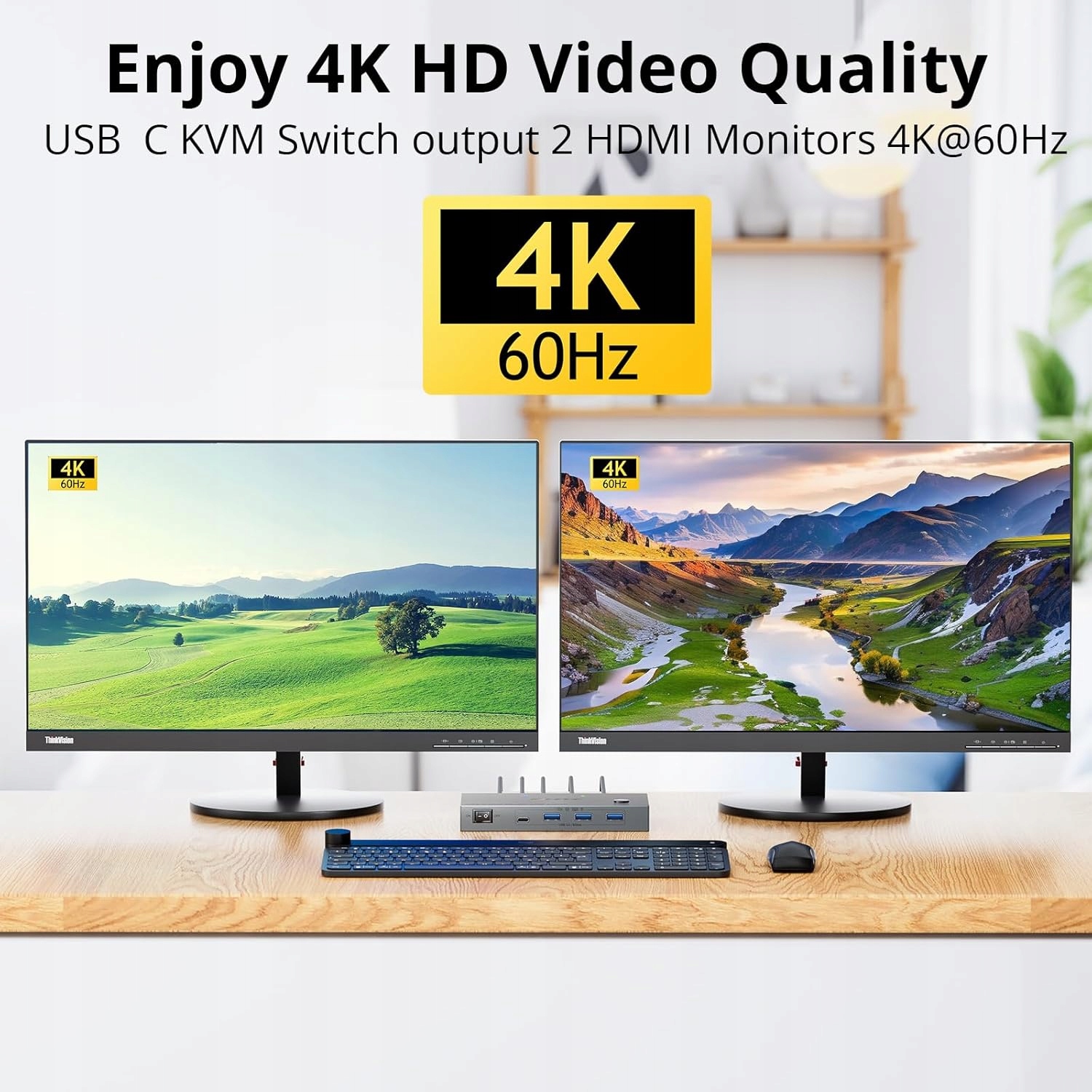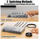 YOUTINGHDAV USB-C KVM to rewolucyjne rozwiązanie dla użytkowników nowoczesnych laptopów wyposażonych w porty USB-C lub Thunderbolt. To jedyne urządzenie, którego potrzebujesz, aby stworzyć profesjonalne stanowisko pracy z dwoma monitorami, obsługiwane przez dwa różne laptopy za pomocą jednej myszy i klawiatury.
