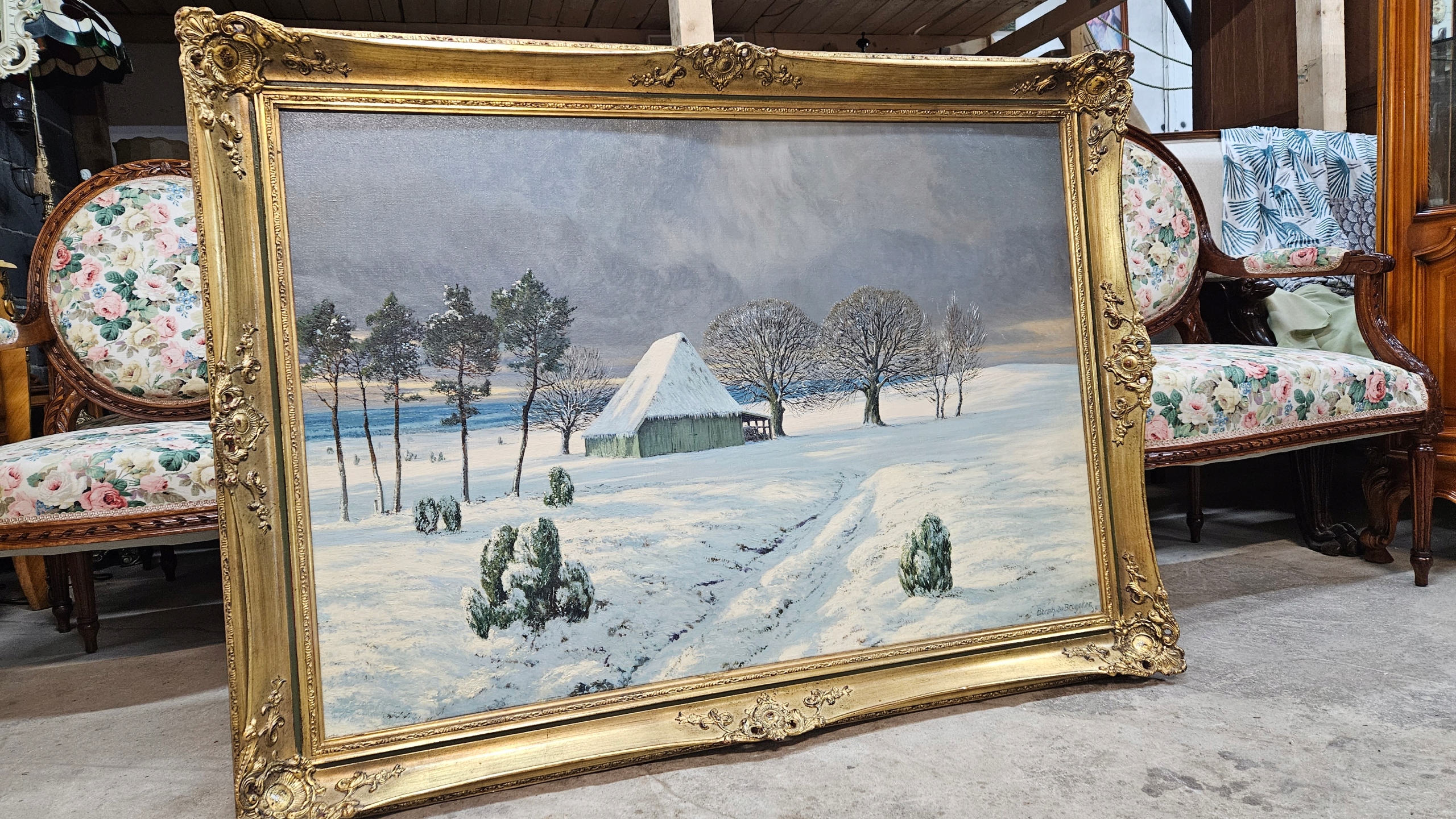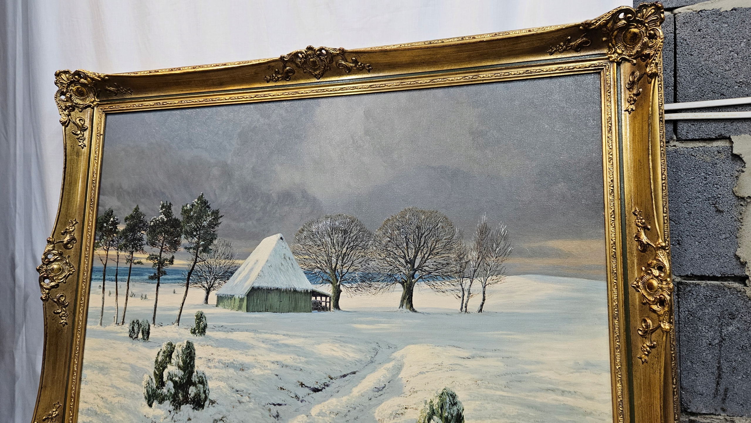 RAMA Drewno , Zdrowa bez uszkodzenia /ciekawa Rzeźbiona .Obraz wewnątrz malowany Olej ,,Pejzaż,, na płótnie bez uszkodzenia /Czysty Wyraźny Bardzo ładny. Obraz z Rama bardzo duży na ścianie robi wraznei.