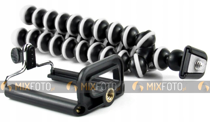Statyw elastyczny o stabilnej, trwałej konstrukcji oraz uchwyt do smartfonów i klasycznych telefonów komórkowych Mobile Holder to doskonałe urządzenie przeznaczone dla użytkowników telefonów komórkowych (smartfonów) z aparatem fotograficznym.. Umożliwi nam wyrównanie i ustabilizowanie kamery w nierównych powierzchniach, przedmiotach. Białe wstawki statywu są pokryte gumą, aby jeszcze bardziej zwiększyć jego skuteczność.