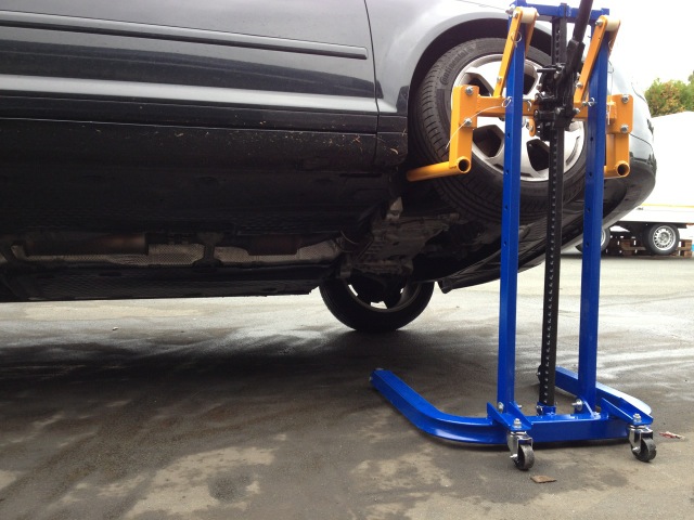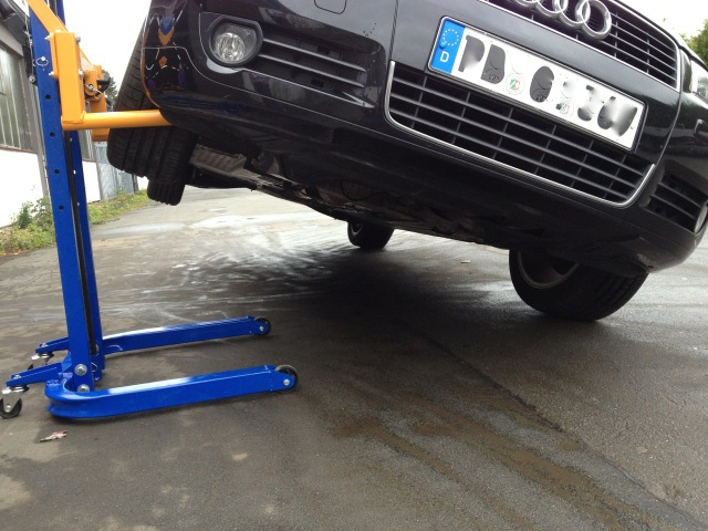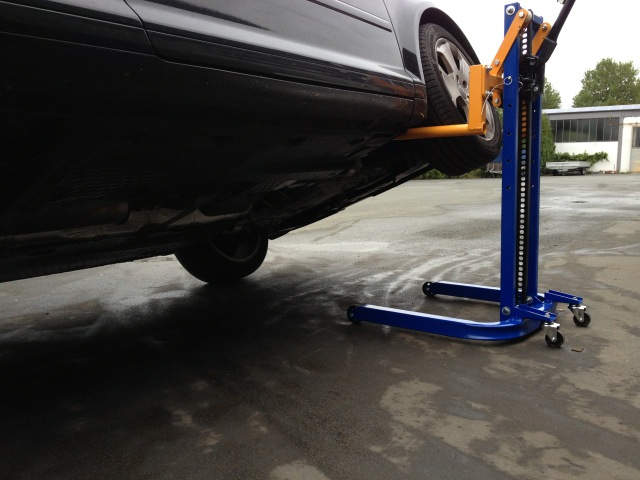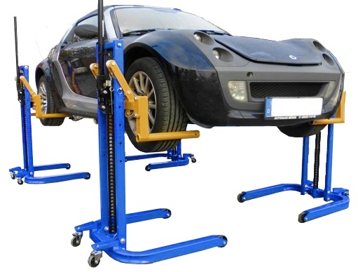 Вилочный кронштейн предназначен для подъемный автомобиль с максимальной массой 1800 кг за одно колесо на высоту около 80 см , обеспечивает легкий доступ к порогам во время ремонта листового металла, краски, связанных с техническое обслуживание шасси или обслуживание выхлопных систем. Расстояние захвата колеса регулируется и может быть 370 мм или 480 мм.
