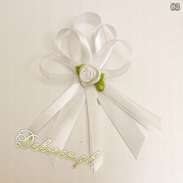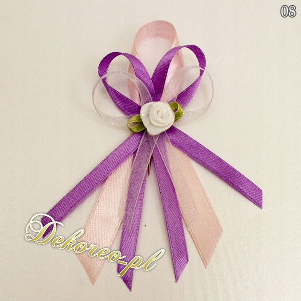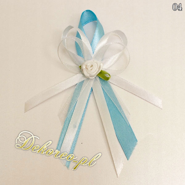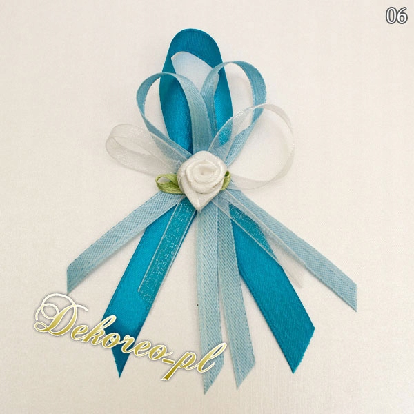 Bazą kotyliona jest tasiemka atłasowa o szerokości 1,2 cm oraz tasiemka atłasowa o szerokości 0,6 cm z możliwością wybrania koloru przez Państwa.