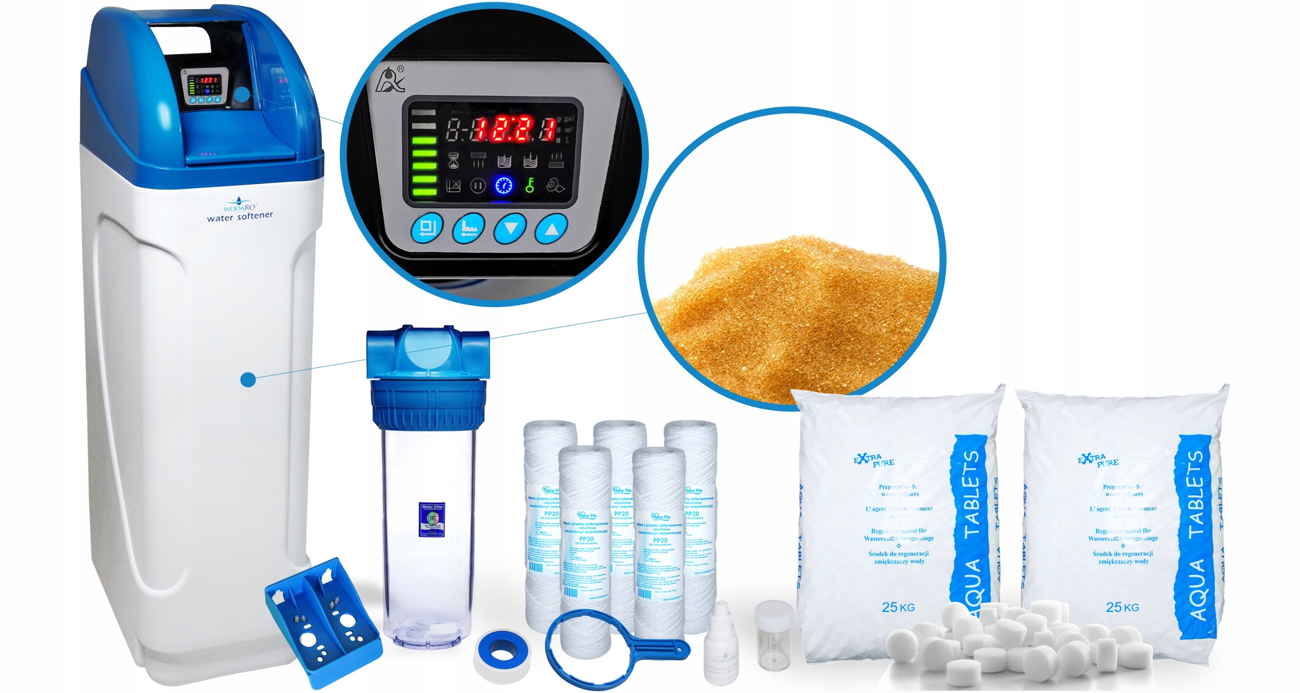 Zmiękczacz eliminuje twardość wody, czyli sole wapnia i magnezu,które osadzając się (szczególnie pod wpływem temperatury) w urządzeniach gospodarstwa domowego i instalacji wodnej zwiększają ich awaryjność oraz zużycie energii.