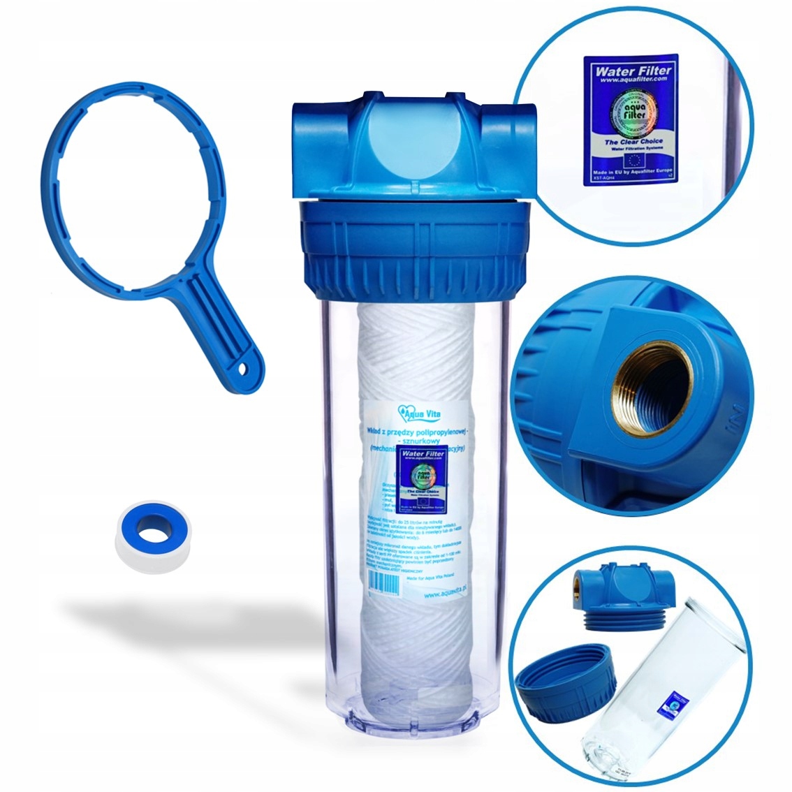 W celu ochrony głowicy przed zanieczyszczeniami mechanicznymi płynącymi w wodzie zaleca się montaż filtra wstępnego narurowego 10” z wkładem polipropylenowym. Do zestawu dołączony jest koprus z zapasem 5 wkładów sznurkowych GRATIS.