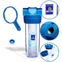 Przeźroczysty korpus 10" umożliwiający optyczną ocenę stopnia zanieczyszczenia wkładu umieszczonego wewnątrz klosza. 3-częściowa obudowa zapewnia maksymalną szczelność korpusu oraz gwarantuje łatwość wymiany wkładów. Głowica posiada mosiężny gwint.