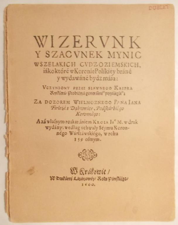 Reprint wydany w 1965 oryginału z 1600 roku, 24 str A5