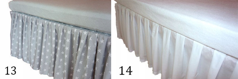 Falbana pięknie zdobi łóżeczko i dodatkowo maskuje szuflady oraz przedmioty trzymane pod łóżeczkiem.