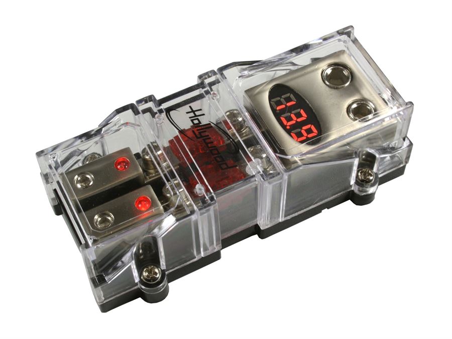 светильник-блок предохранителей car audio - 2xMini-ANL, вход.1x53mm2 1x21mm2 / вывода.2x21mm2, вольтметр, красный дисплей