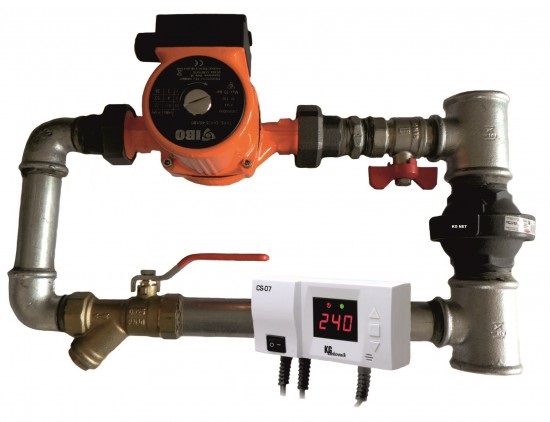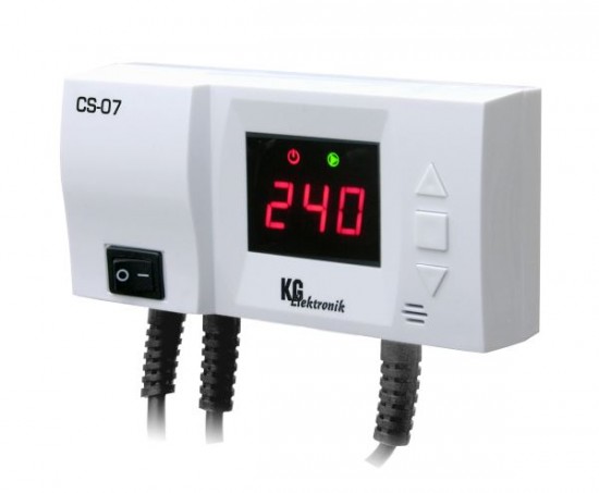 Контроллер CS-07 предназначен для управления насосом циркуляции воды цо, Задача регулятора включение насоса, если температура превысит требуемое значение, и выключение его, если котел wychłodzi (в результате погашения). Это позволяет не тратить действия насоса, что позволяет сэкономить электроэнергию (экономия, в зависимости от степени использования котла, достигают даже 60%), как и продлевает срок службы насоса.
