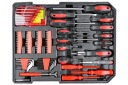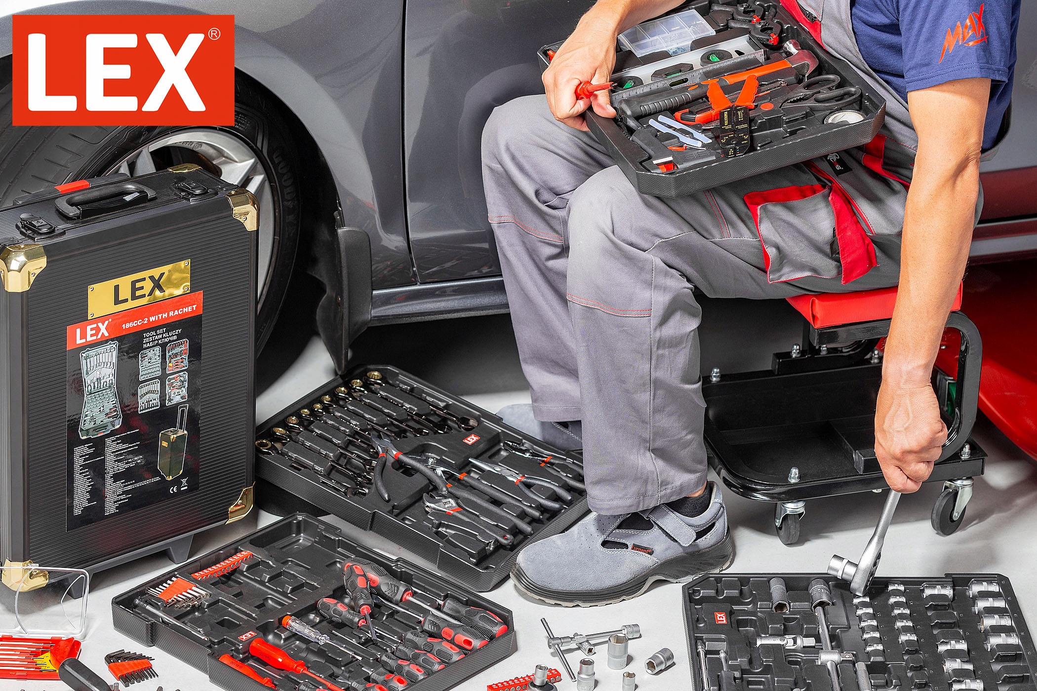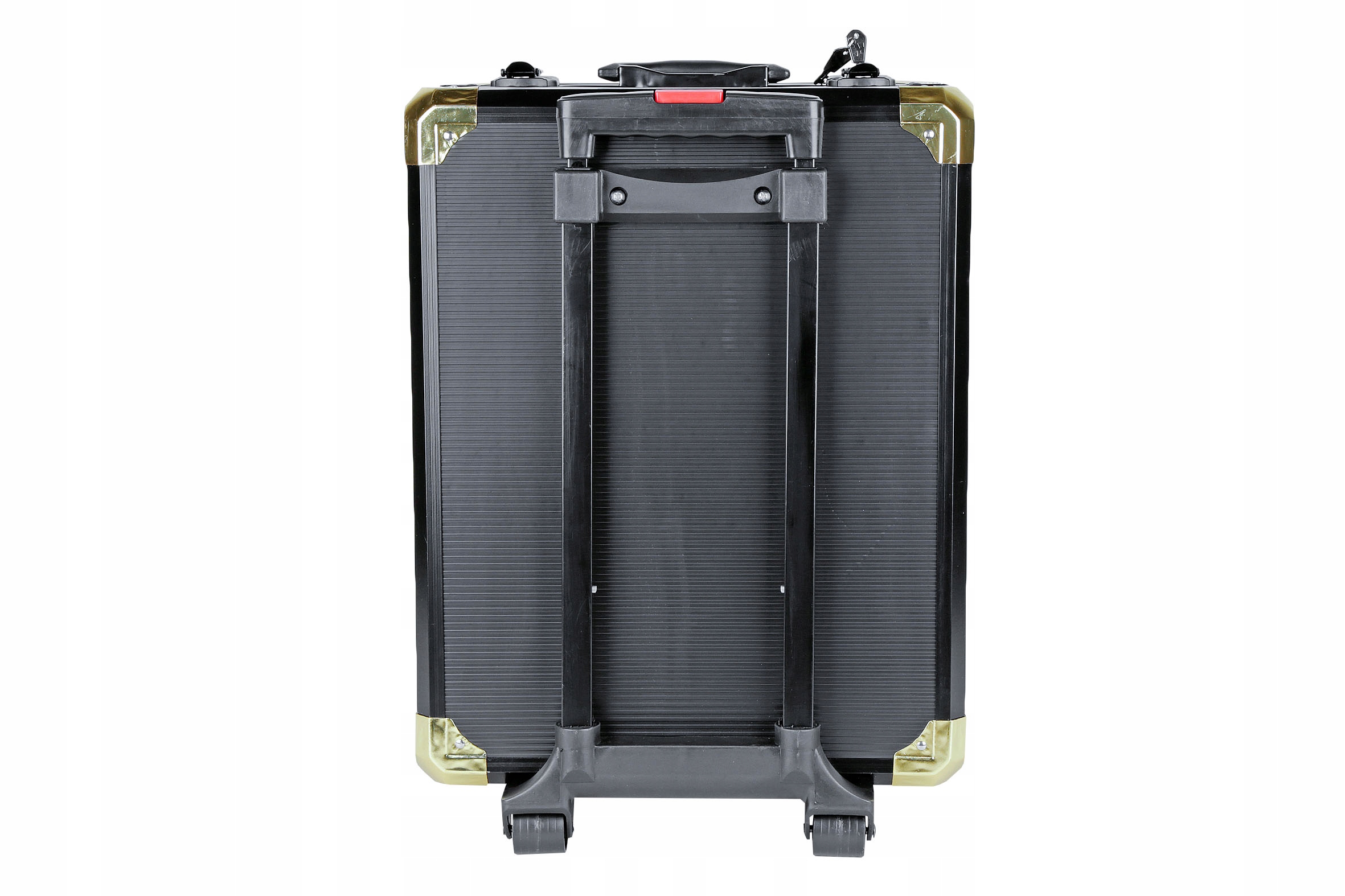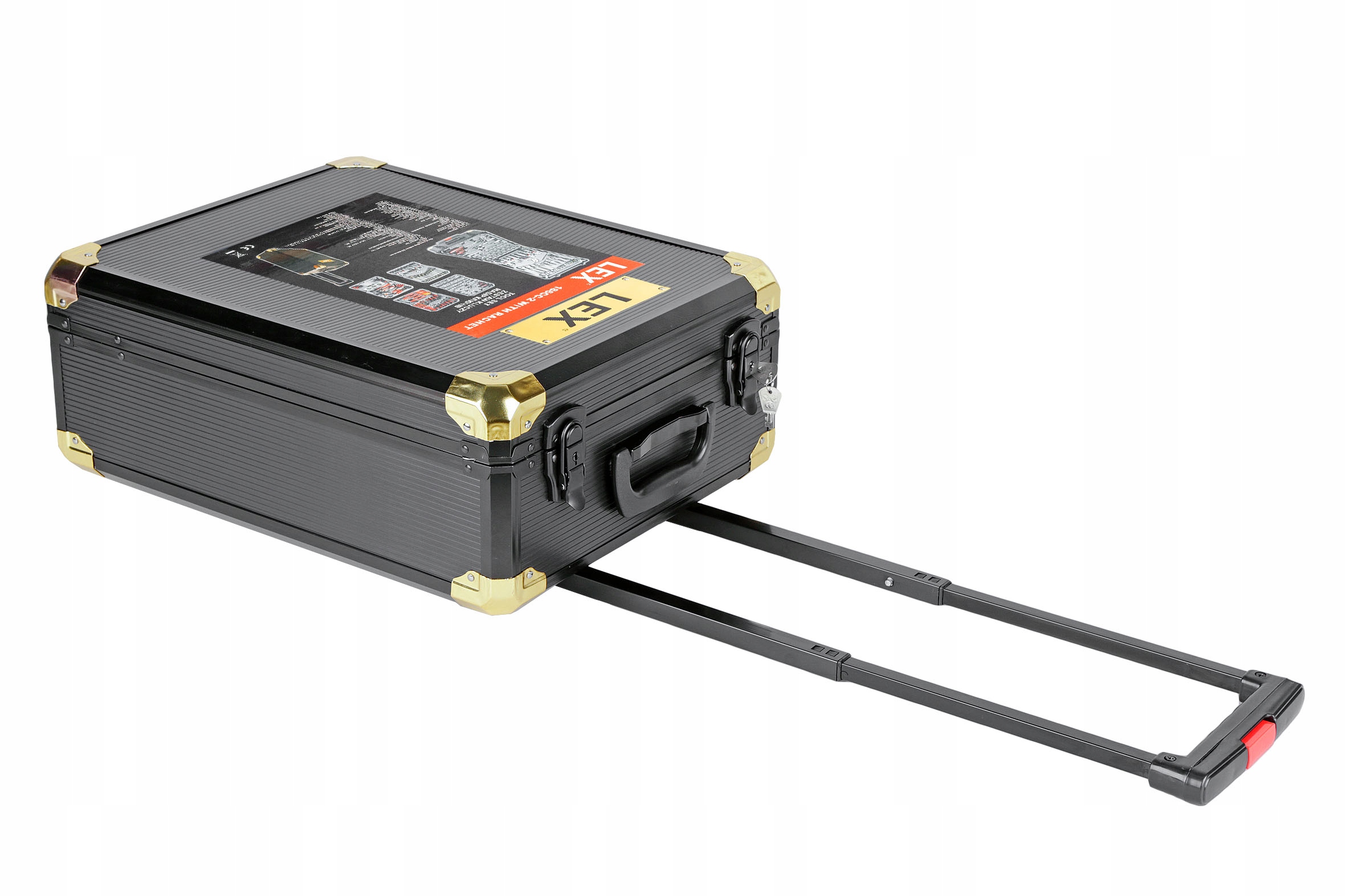 Набор имеет закрытие на ключ, благодаря чему обеспечено безопасность набора от доступа детей, посторонних и случайных россыпью элементов набора. Телескопическая ручка и колеса позволяют без проблем транспортировать комплект.