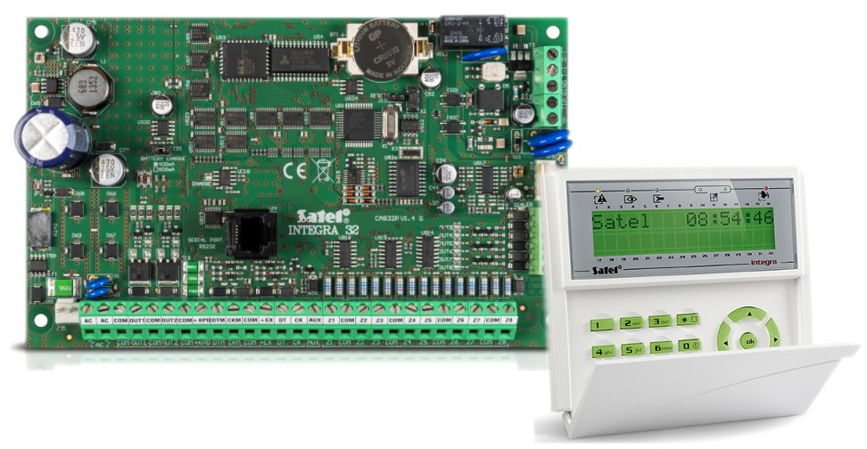 Centrala Satel INTEGRA 32 obsługuje 8 do 32 wejść oraz 8 do 32 programowalnych wyjść. Posiada wbudowany komunikator telefoniczny z funkcją monitoringu, powiadamiania głosowego i zdalnego sterowania. Obsługa systemu możliwa jest dzięki manipulatorom LCD, klawiaturom strefowym, pilotom i kartom zbliżeniowym, a także zdalnie – używając komputera lub telefonu komórkowego.