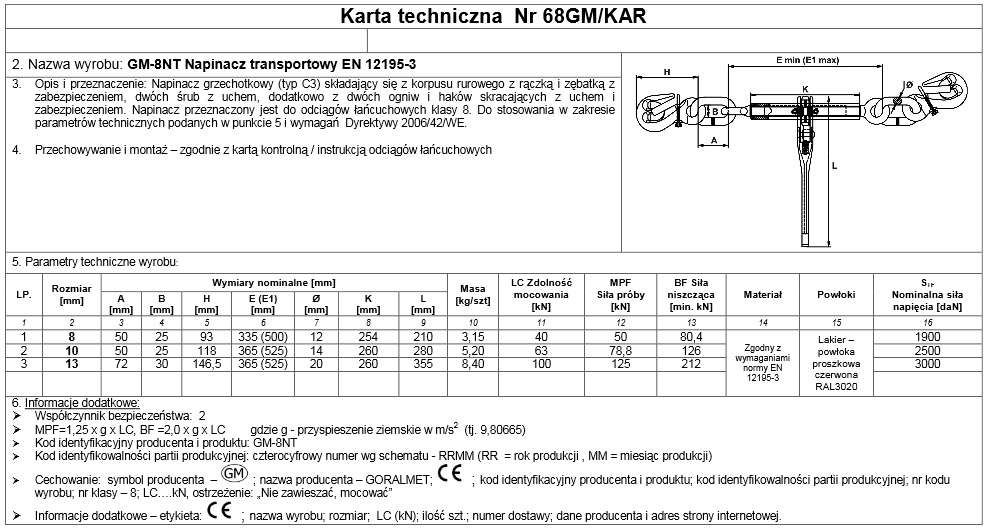 KLASA 8 NAPINACZ TRANSPORTOWY 8 mm