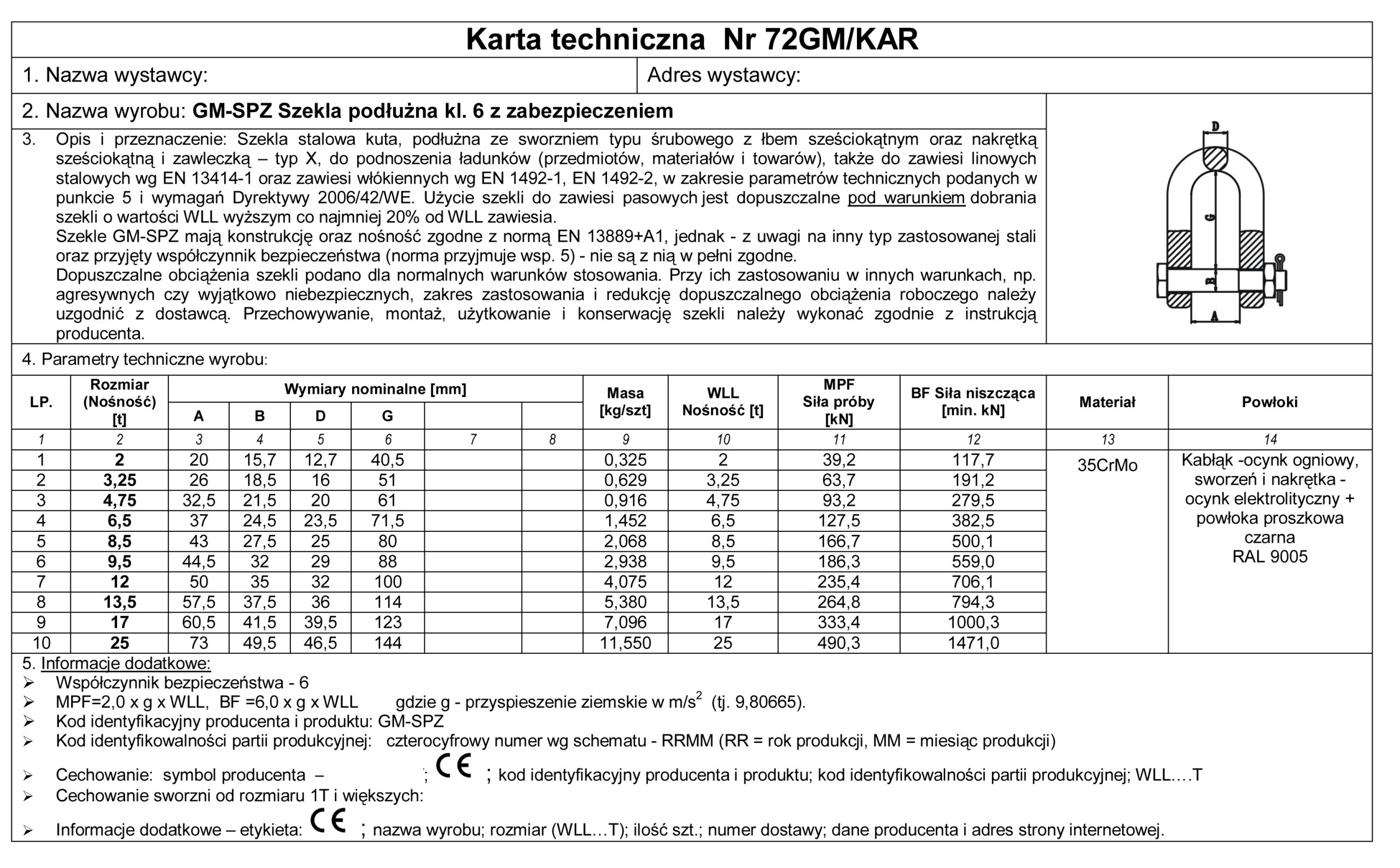 SZEKLA PODŁUŻNA KL. 6 Z ZABEZPIECZENIEM 6,5 T - 1 szt.