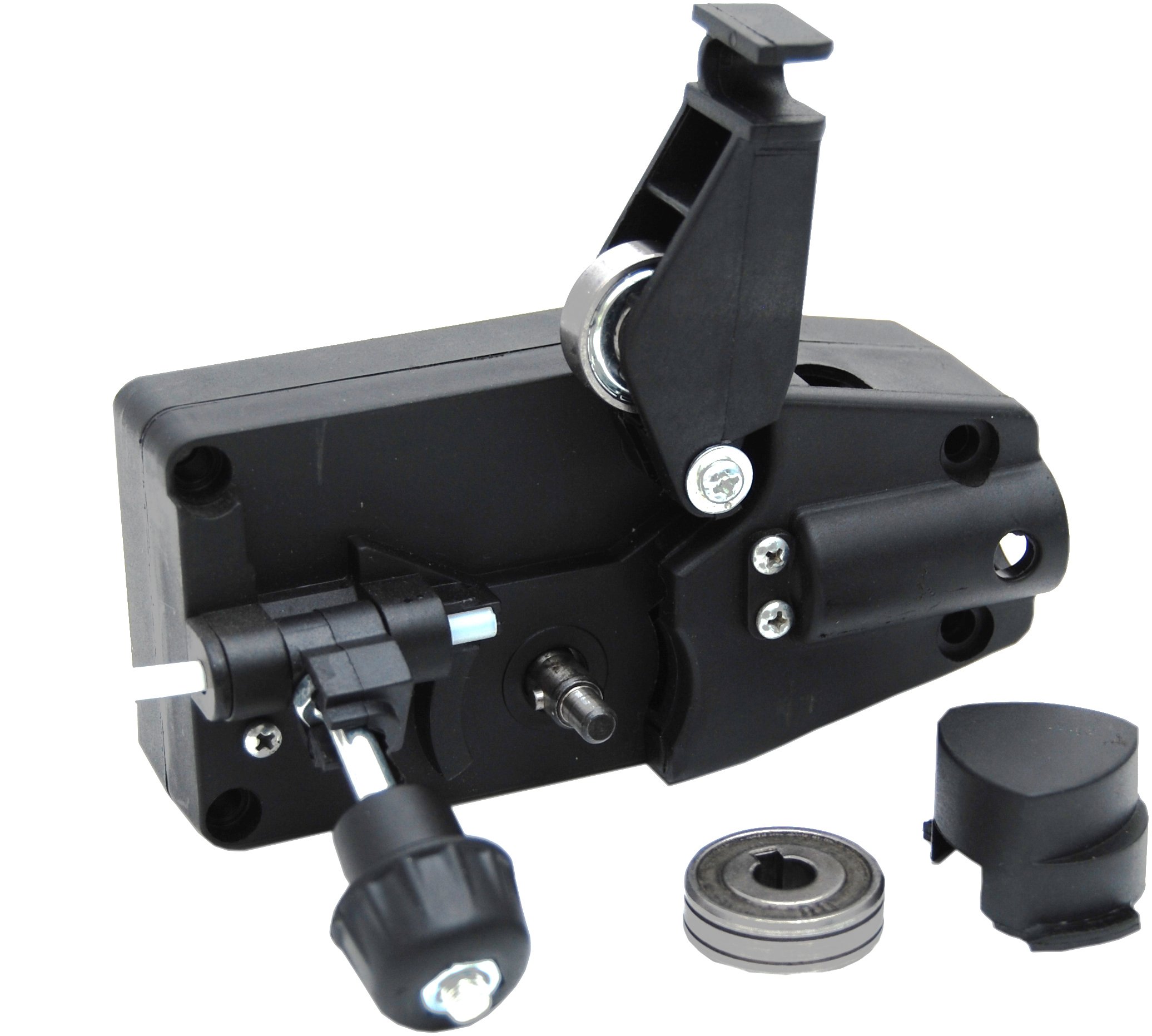 Универсальный фидер провода 2 ролика СГА ДК 12В, используемый в полуавтомате сварочных работ, в которых сварочная горелка монтируется на сталь.