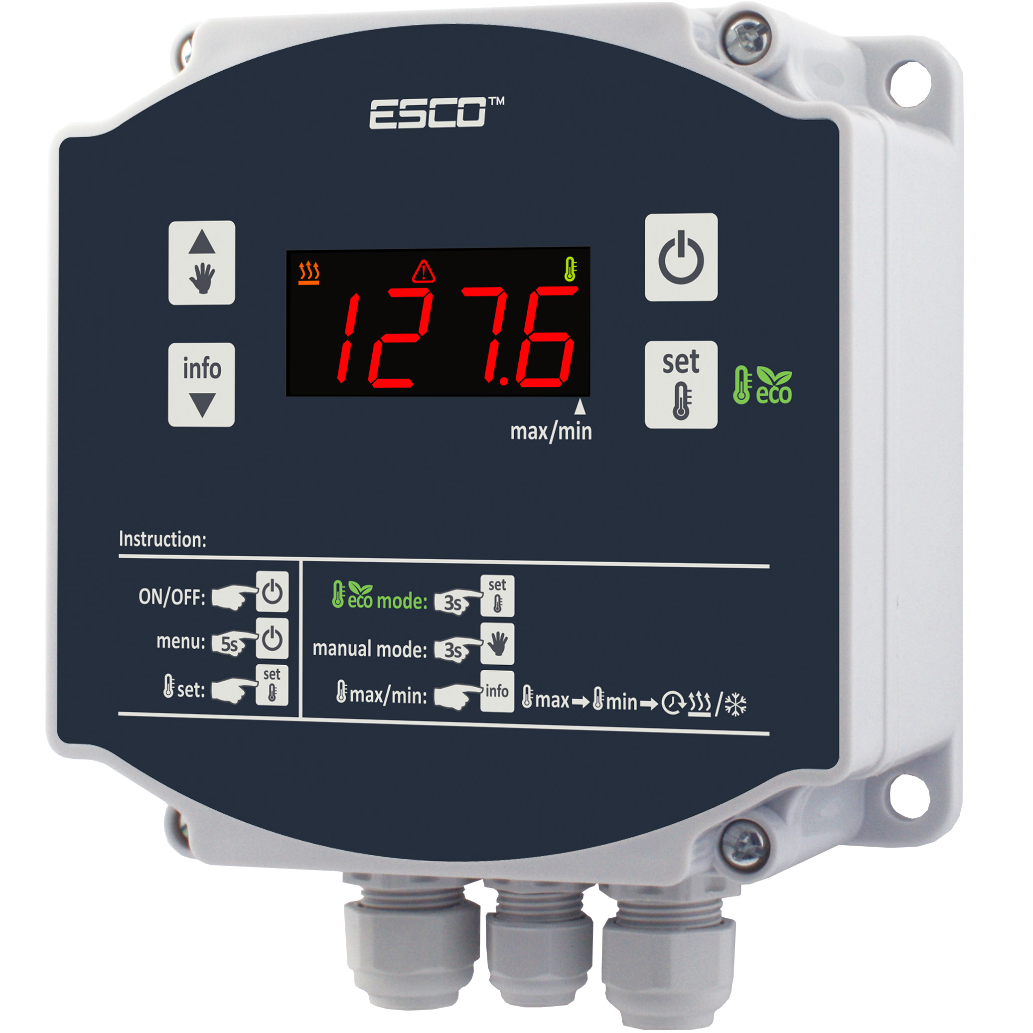 Регулятор имеет цифровой индикатор температуры и функцией калибровки показаний. Применяется метод регулирования вкл/выкл (ON-OFF) с регулируемым гистерезисом. Регулятор имеет выход регулировки реле большой мощности (максимальная резистивная нагрузка 4500W). Режим работы: "нагрев" или "охлаждение" устанавливает меню. Удобный настенный монтаж.