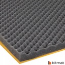Pianka akustyczna marki Bitmat jest wykonywana ze spienionego poliuretanu, a jego struktura to otwarte komórki. Zastosowanie profilu fali doskonale sprawdza się w studiach i pokojach muzycznych/kabinach lektorskich, ponieważ poprawia zrozumiałość mowy i wokalu. Jest to zastosowanie optymalne, które przy stosunkowo niskich kosztach pozwala zapobiegać pogłosowi, poprawia jakość dźwięku w pomieszczeniach mieszkalnych i roboczych, a także tworzy nowoczesny design.