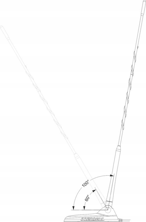 Antena President NewYork posiada przegub pozwalający na ustawienie promiennika pod 3 różnymi kątami pochylenia. Jedno z ustawień pozwala na skrócenie anteny nawet do 43 cm! Jest to unikatową na tle pozostałych produktów konkurencji możliwość regulacji tak małej helikalnej anteny CB.