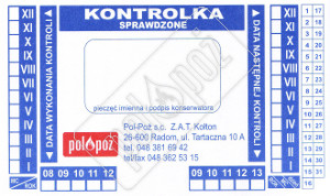 Każda gaśnica przed wysyłką przechodzi przegląd oraz posiada legalizację potwierdzoną odpowiednią kontrolką naszego zakładu.