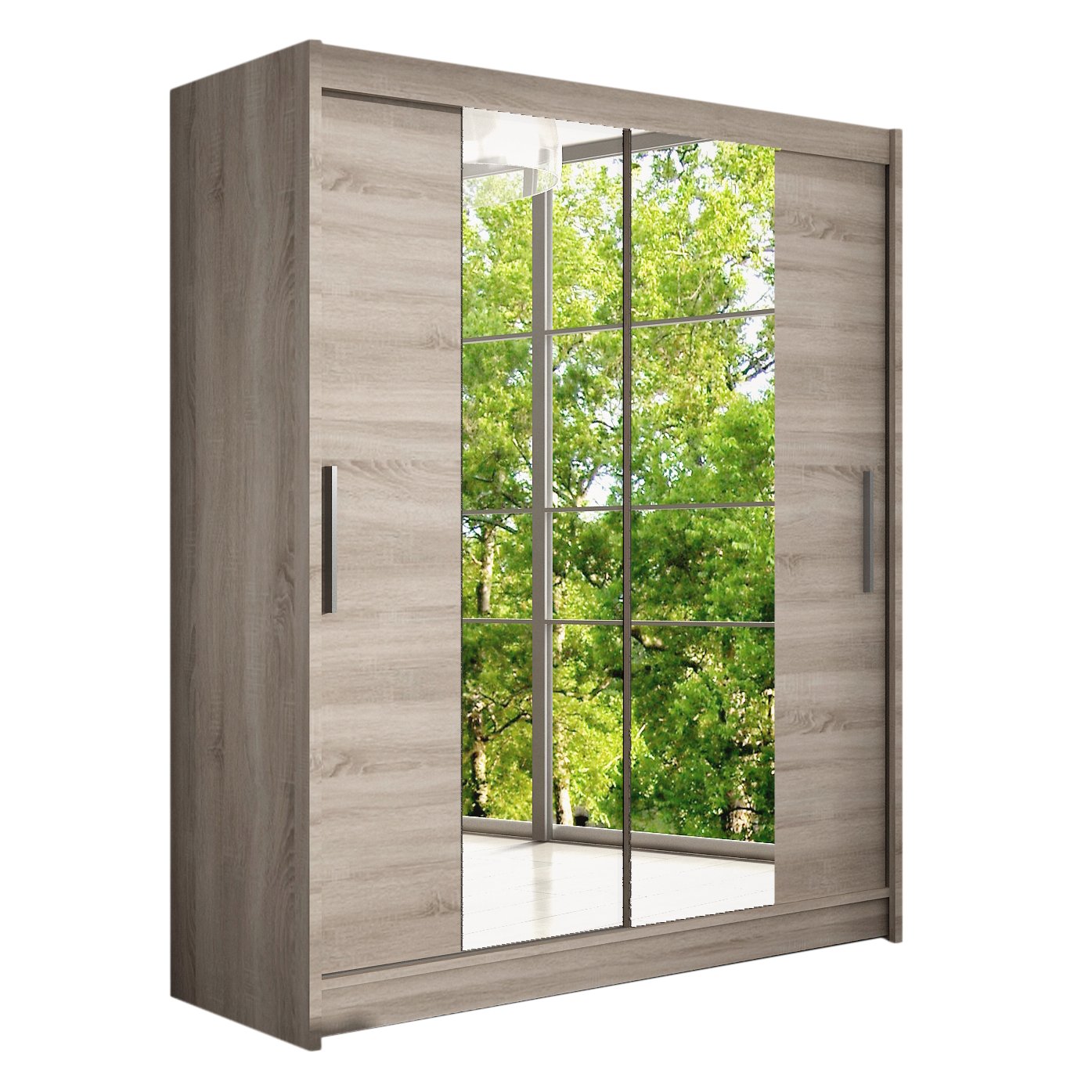 Двухдверный шкаф с системой раздвижных дверей и зеркалами, для облегчения ежедневного использования. Современный, функциональный и элегантный. Разработан с целью о безопасном хранении одежды и других личных вещей.