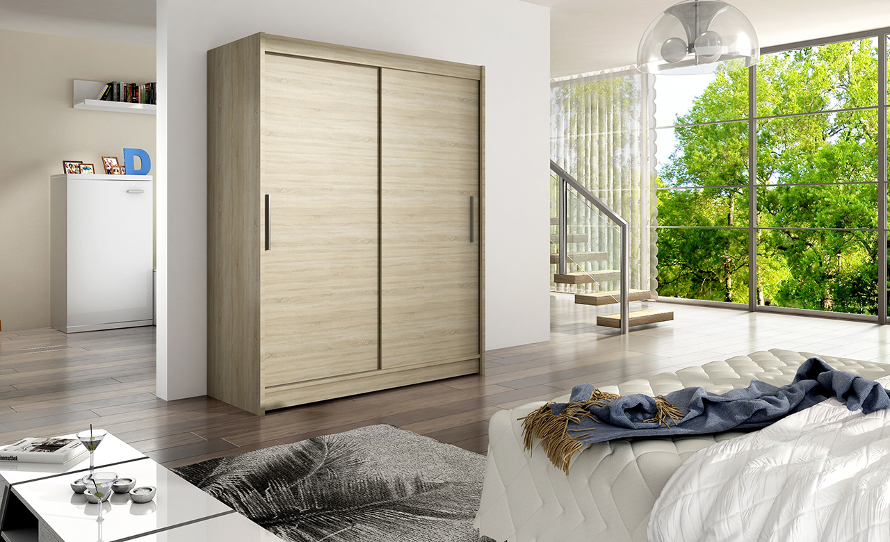 Двухдверный шкаф с системой раздвижных дверей для удобного ежедневного использования. Современный, функциональный и элегантный. Предназначен для безопасного хранения одежды, а также другие личные вещи. Он отлично подойдет для спальни, гостиной или прихожей.