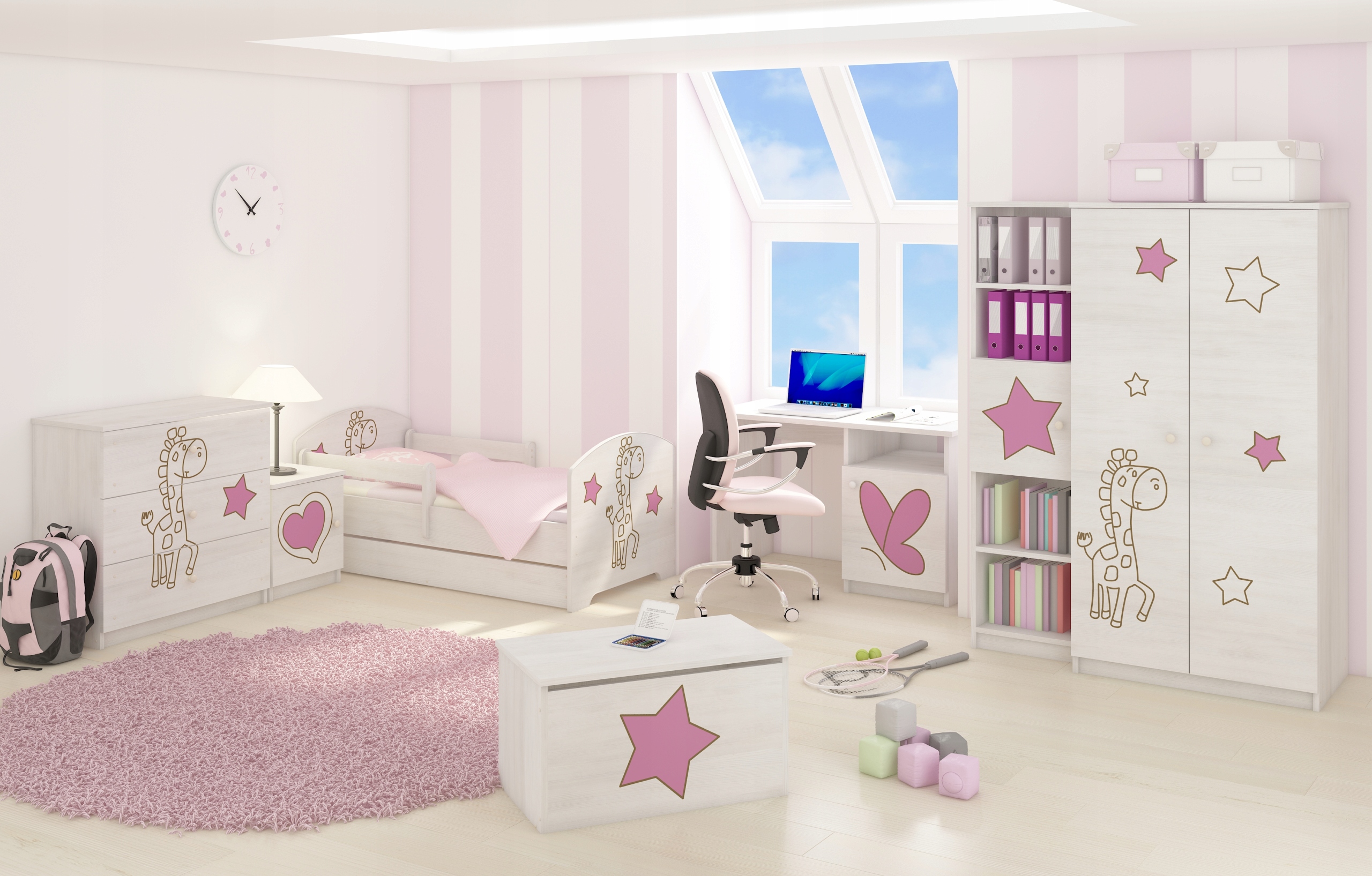 Na frontach mebli umieszczone są kolorowe nadruki, można bez obaw myć je ściereczką. Nadruki zabezpieczone są specjalnym laminatem, aby zapewnić mu trwałość i zapobiec przed wycieraniem się obrazka.
