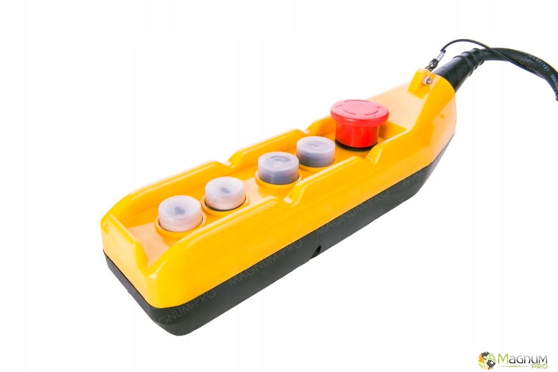 Pilot sterowania z kablem przyłączeniowym o długości około 2,5 metra z dużymi, wodoodpornymi przyciskami pozwala sprawnie sterować ładunkiem w obu płaszczyznach.