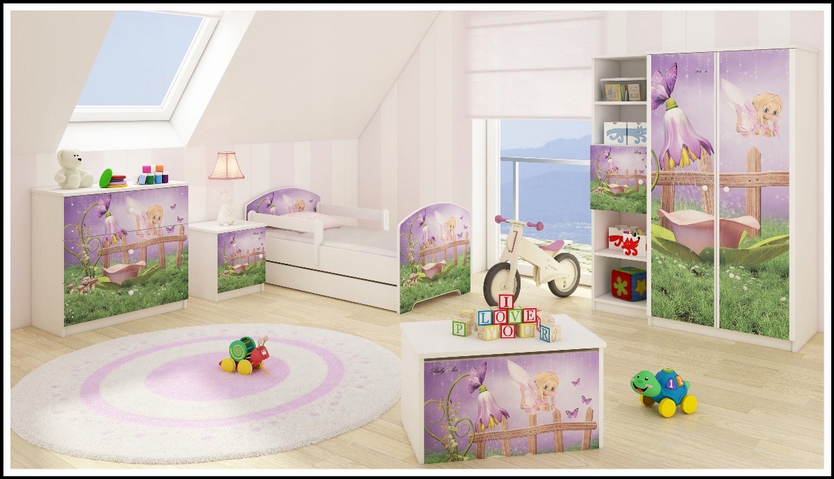 Na frontach mebli umieszczone są kolorowe nadruki, można bez obaw myć je ściereczką. Nadruki zabezpieczone są specjalnym laminatem, aby zapewnić mu trwałość i zapobiec przed wycieraniem się obrazka.